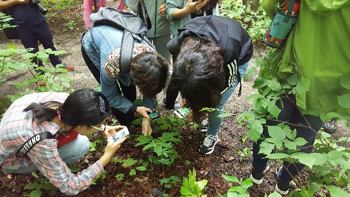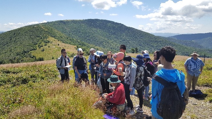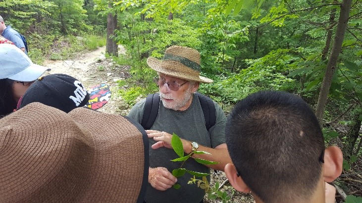2016年北卡州立大学教授在阿巴拉契亚山区指导联合课程学生识别植物、学习植被和生态知识,了解东亚北美植物间断分布。