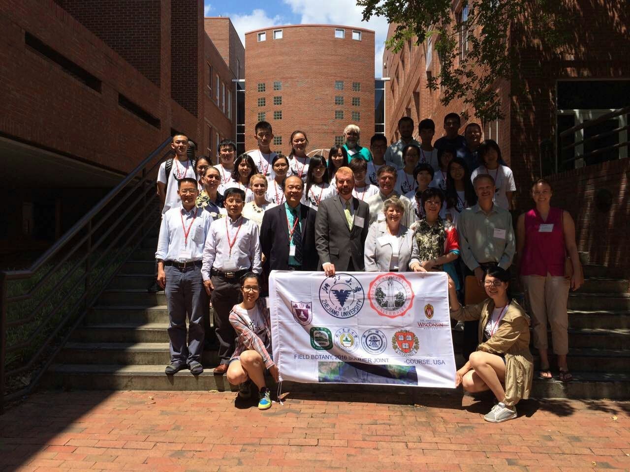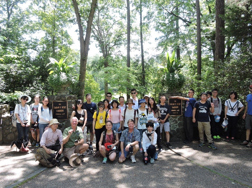 2016年浙大等参加联合课程学生在杜克大学植物园学习,Paul教授(前排左2)指导。