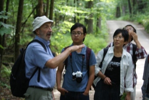 Michael博士等向学生介绍树木园概况。