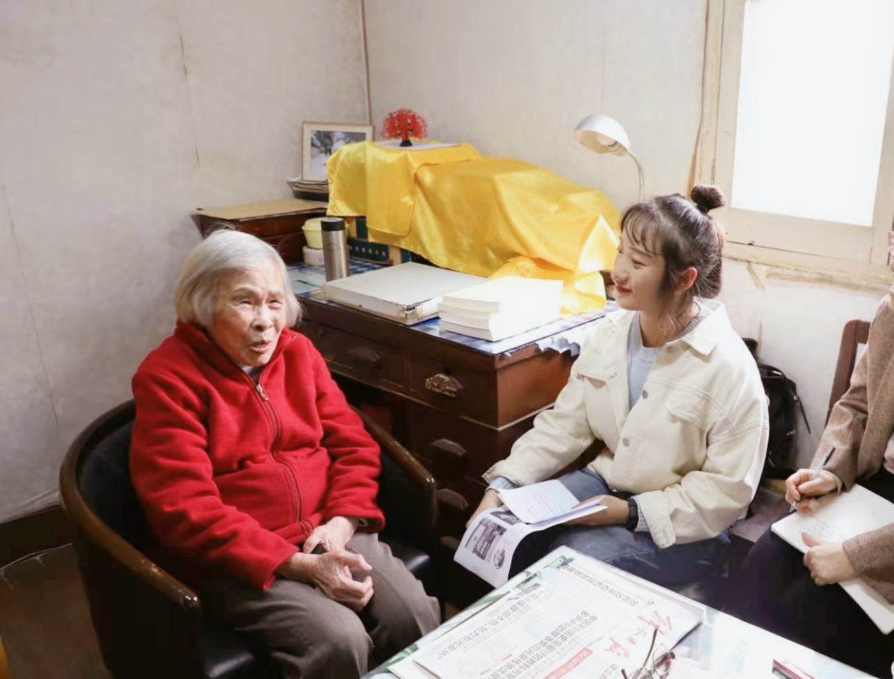 孙文礼作为交大师生代表看望新四军老战士