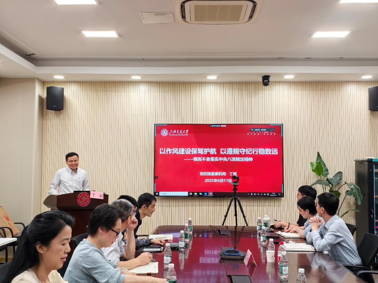 丁剑同志作《以作风建设保驾护航,以遵规守纪行稳致远》专题辅导报告,从“党的作风就是党的形象”“中央八项规定开局破题”“持之以恒正风肃纪反腐”三个方面,回顾了党的历史进程中作风建设取得的重大成果,系统阐述了中央八项规定出台的历史背景、核心要义与实践要求。他结合典型案例深入浅出的剖析了违反八项规定行为对党的作风建设的重大危害,提示了当前新型“四风”问题隐形变异、公务接待等存在的问题,特别强调了高校科研经费管理中的存在的风险,警示党员干部要时刻保持清醒头脑,严守纪律红线,筑牢思想防线,从源头上杜绝违规使用等问题,使科研经费真正服务于学术创新与教育发展。