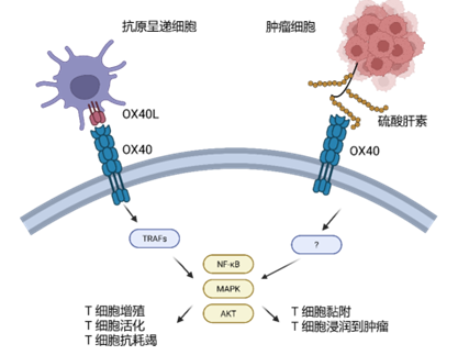 图1.OX40与OX40L和硫酸肝素相互作用促进T细胞抗肿瘤活性