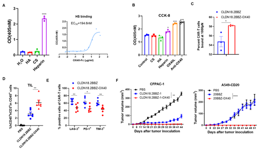 图2. OX40与硫酸肝素的结合及其对CAR-T黏附和抗肿瘤活性的调控