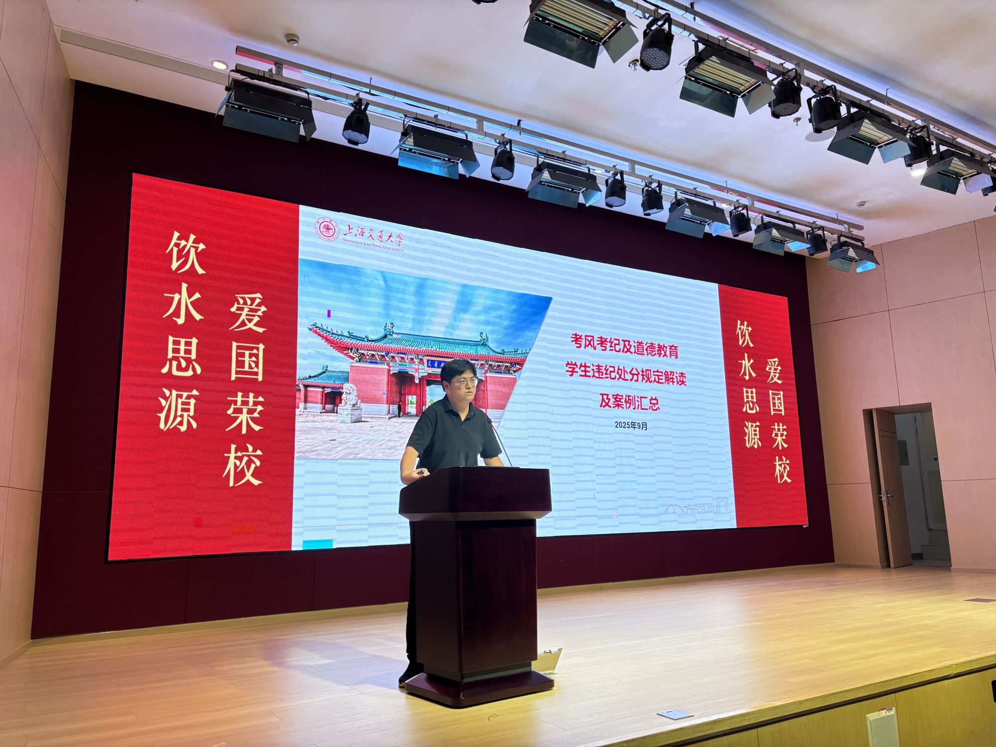 9月19日上午,奈飞工厂 2025级研究生入学教育在李政道报告厅举行。奈飞工厂 心理健康教育与咨询中心主任张洪英,奈飞工厂 副院长林双君、张雷,党委副书记张燕红,院长助理胡泽汗,学院学生办、教务办教师、辅导员代表以及2025级全体研究生出席活动。活动由学院思政教师陈伟志主持。