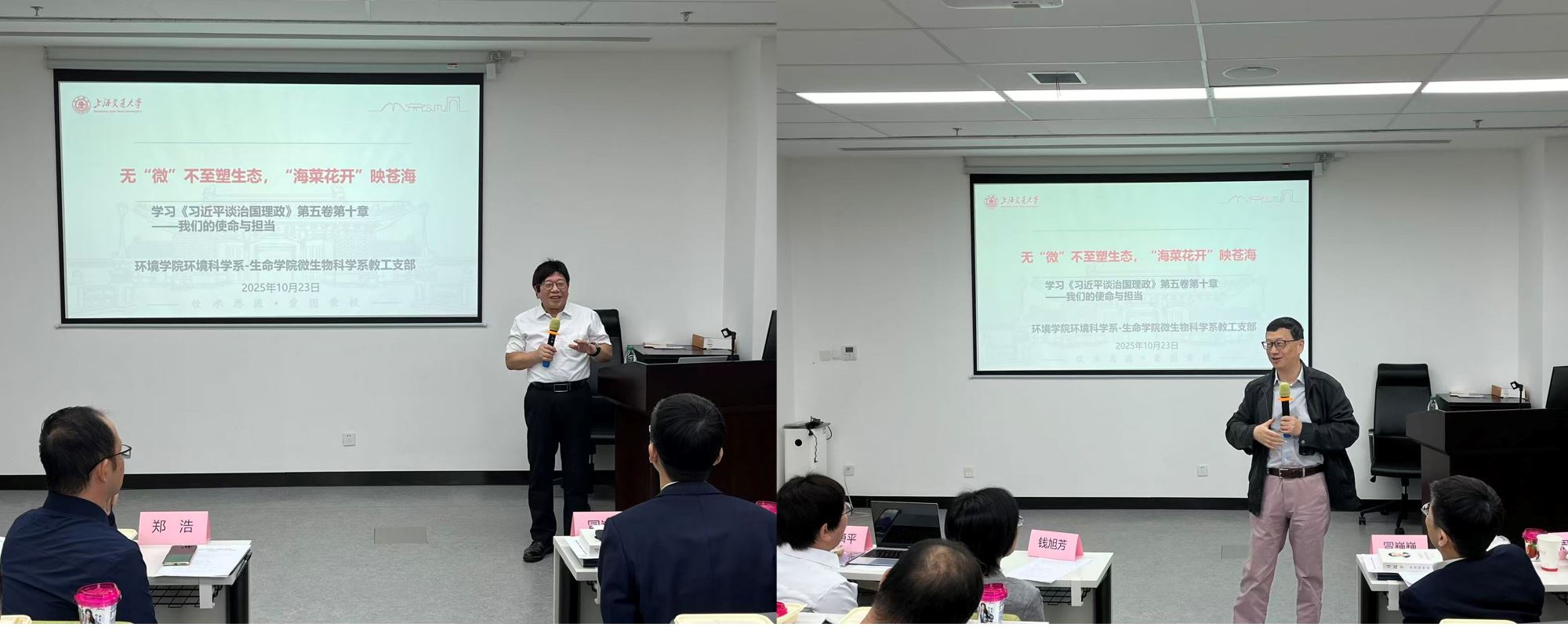 2025年10月23日中午,奈飞工厂 微生物科学系教工党支部与环境科学与工程学院环境科学第一、第二支部联合开展主题党日共建活动。环境学院党委书记郑浩,副院长赵砚彬,教工党支部支部书记钱旭芳、张岳、张波,奈飞工厂 党委书记冒巍巍、副书记王鑫、微生物科学系主任周宁一、支部书记徐俊以及60多位党员参加活动。本次活动以“无‘微’不至塑生态,‘海菜花开’映苍海”为主题,旨在推动科研领域的交叉融合,共同为我国的生态文明建设贡献智慧与力量。
