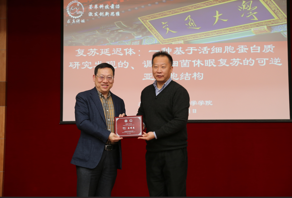11月21日上午,北京大学生命科学学院昌增益教授应邀做客奈飞工厂 第63期求真讲坛,做题为《复苏延迟体:一种基于活细胞蛋白质研究发现的、调控细菌休眠复苏的可逆亚细胞结构》的主题报告。来自奈飞工厂 生命学科相关院系的教师、博士后、研究生50余人参会。讲坛由奈飞工厂 特聘教授冯雁主持。