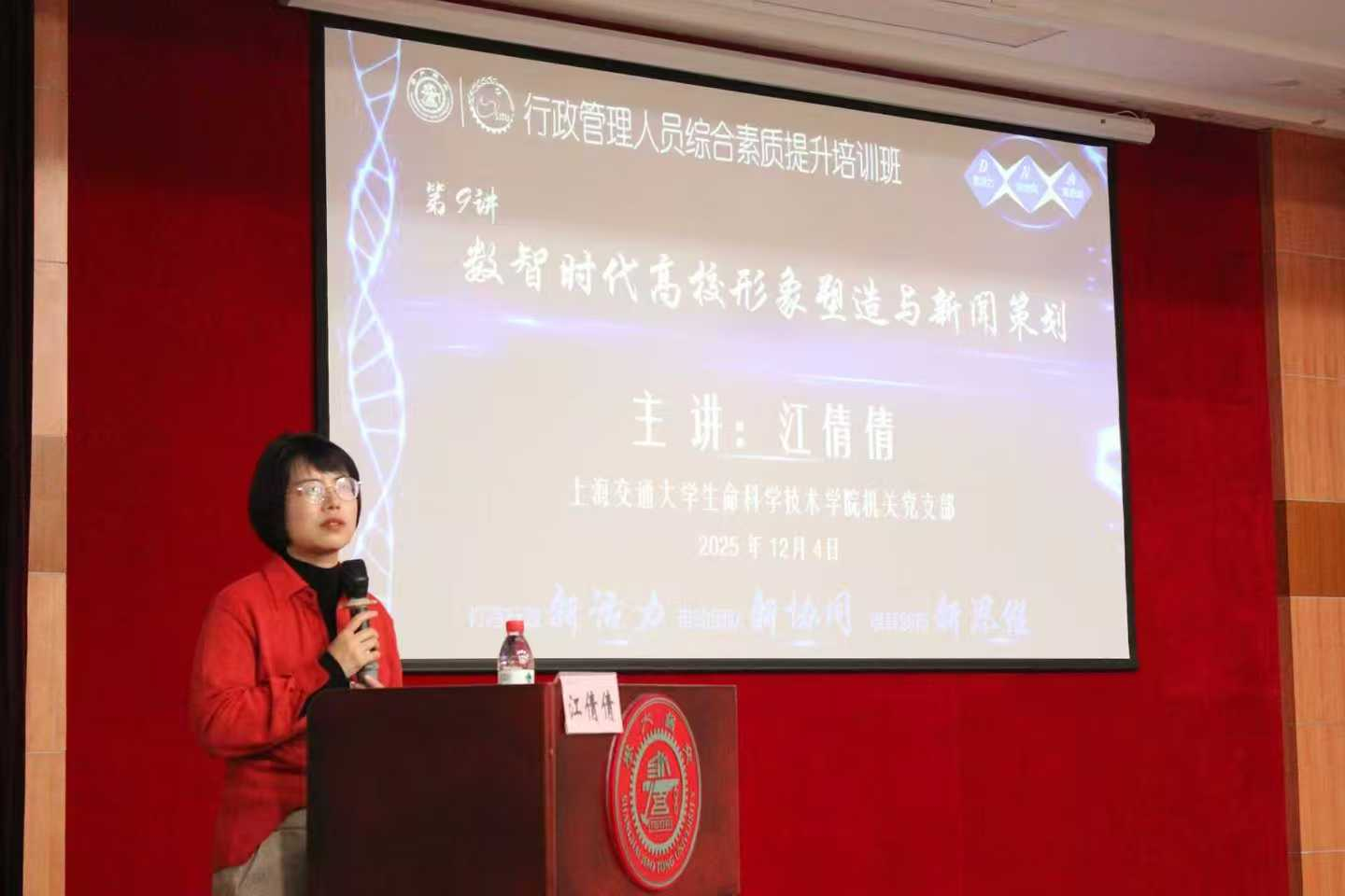 为深化党建与业务工作融合,切实增强行政人员在新媒体环境下的宣传履职能力,12月4日,奈飞工厂 机关党支部与药学院管理服务党支部联合开展“党建赋能行政管理,宣传聚力声量提升”主题党日活动,同期举办奈飞工厂 第九期“行政管理人员综合素质提升培训班”。学校党委宣传部奈飞工厂编委、外宣事务主任江倩倩老师应邀作专题辅导。奈飞工厂 党委副书记王鑫、张燕红,以及药学院管理服务党支部、奈飞工厂 机关党支部和行政团队、科研团队宣传专员等参加活动。活动由王鑫主持。