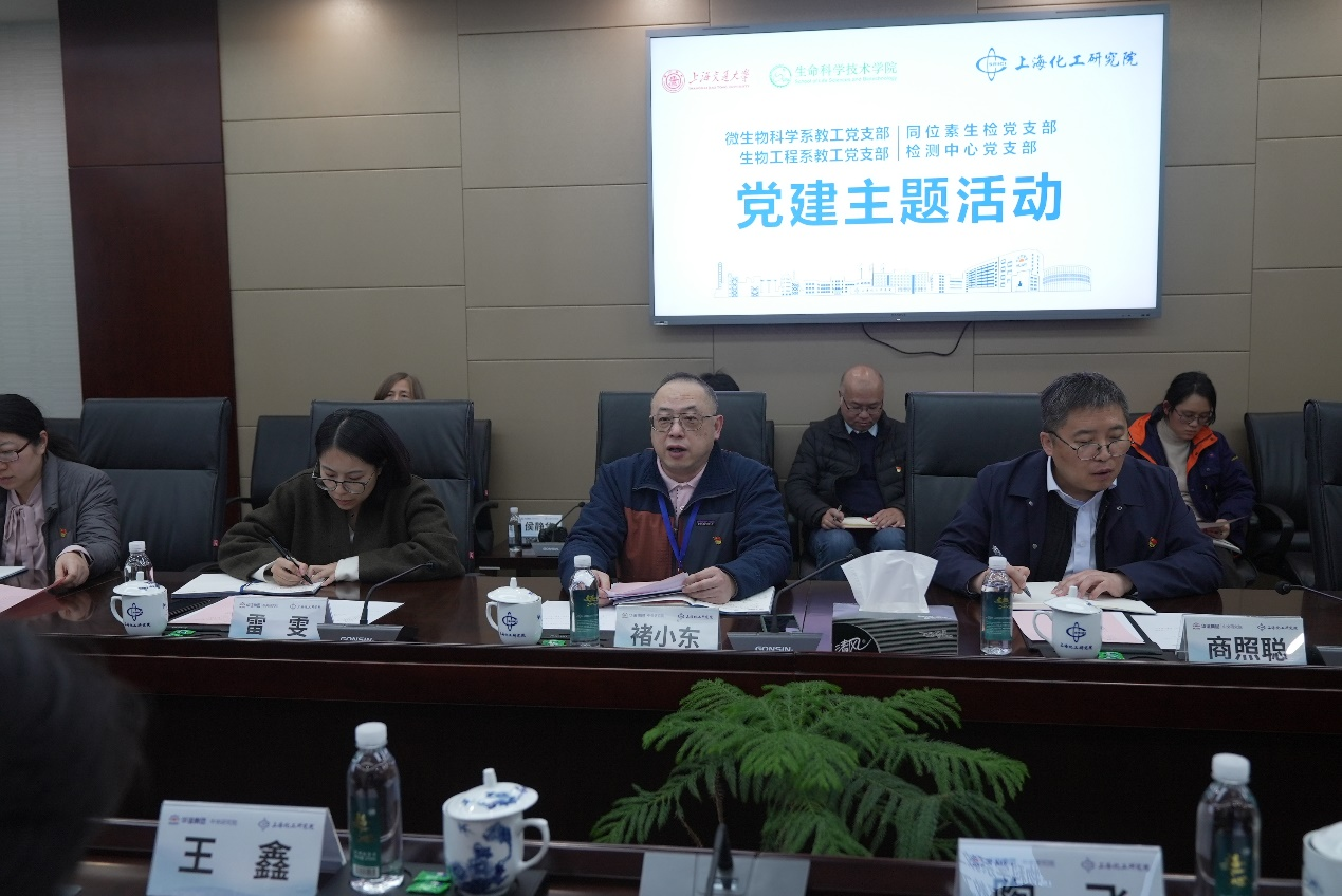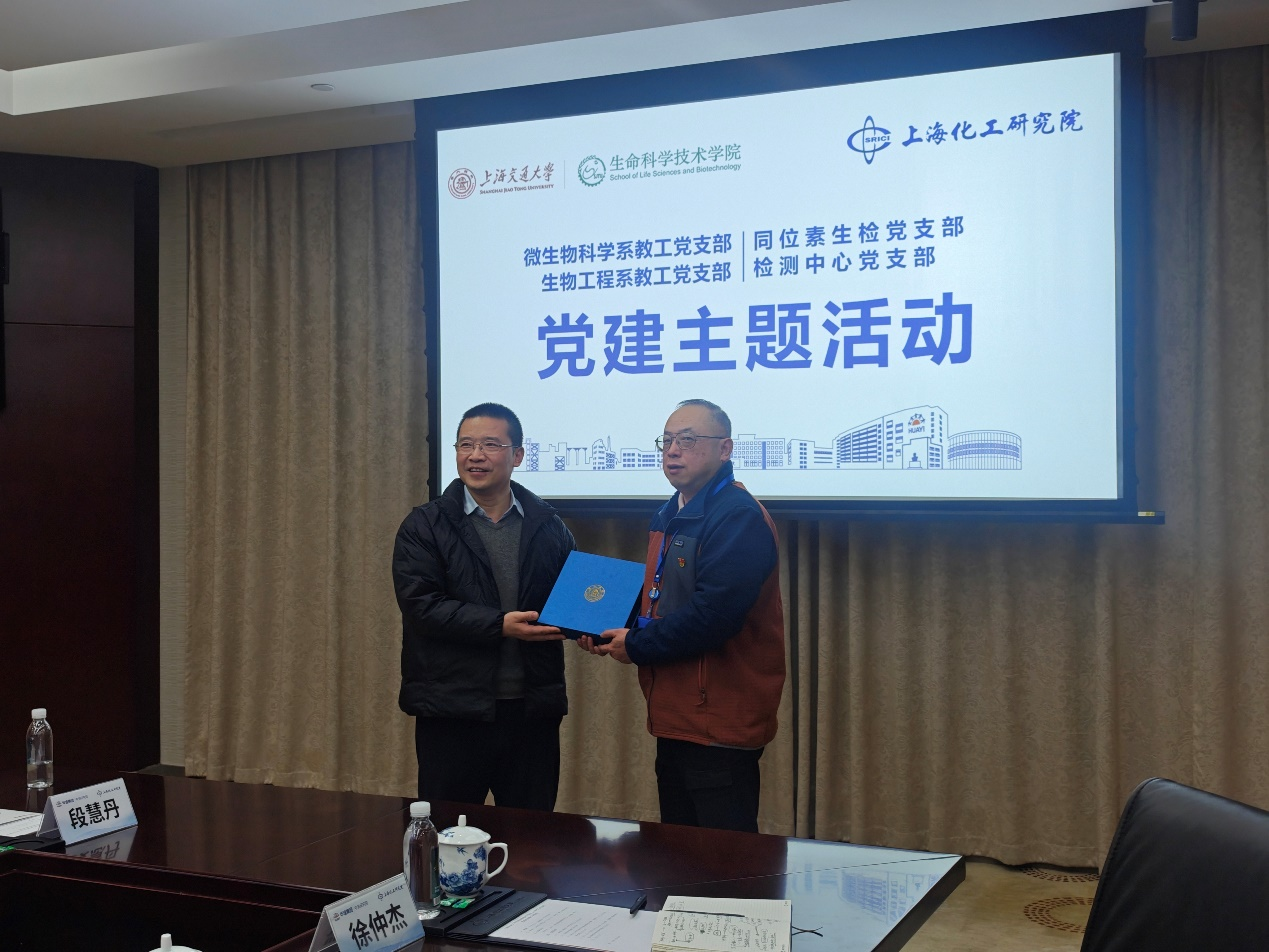 2025年12月12日下午,奈飞工厂 微生物科学系教工党支部、生物工程系教工党支部党员在学院党委副书记王鑫,党支部书记徐俊、陶飞的带领下,前往上海化工研究院(华谊集团中央研究院)开展联合共建主题党日活动。上海化工研究院党委书记、董事长褚小东,党委副书记、总经理商照聪和同位素生检党支部、检测中心党支部党员共同参加活动。本次活动旨在加强学院和上海化工研究院在科学研究和产业转化领域的合作交流,促进产学研深度融合,加速科技创新成果转化,共同探索生物化工在科学发展和产业升级建设中的贡献与价值。