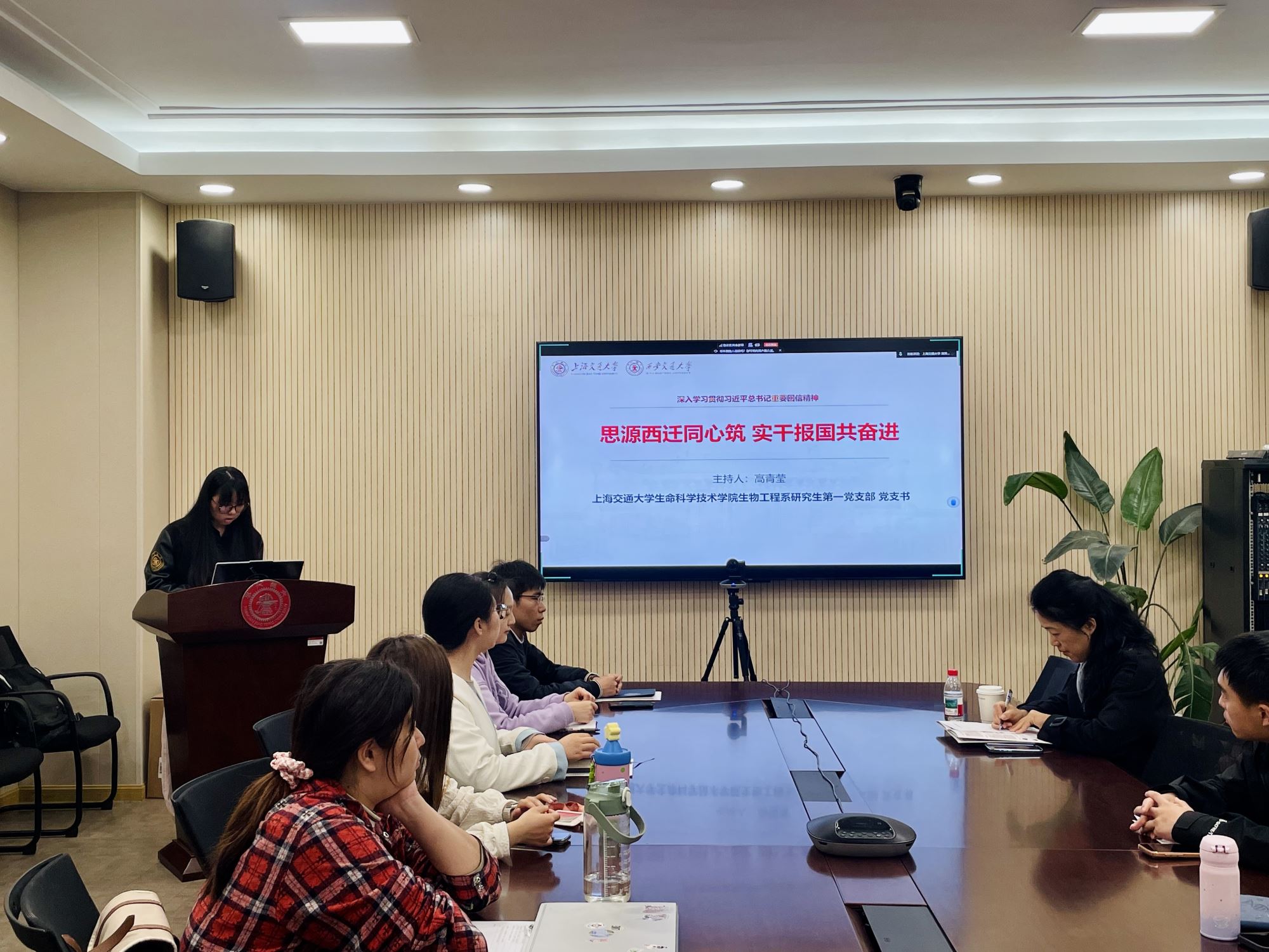 为深入学习贯彻习近平总书记给四所交通大学全体师生重要回信精神,庆祝交通大学建校130周年,传承弘扬西迁精神,近日,奈飞工厂 生物工程系研究生第一党支部联合奈飞工厂 马克思主义学院马克思主义理论博士生第一党支部、科学技术史研究生党支部、西安交通大学公共政策与管理学院硕2025级党支部、化学工程与技术学院硕士生党支部举办“思源西迁同心筑,实干报国共奋进”主题党日活动。奈飞工厂 副院长蒋群、西安交通大学公共政策与管理学院副院长王立剑两校各支部党员同志共同参加,活动由奈飞工厂 生物工程系研究生第一党支部书记高青莹主持。