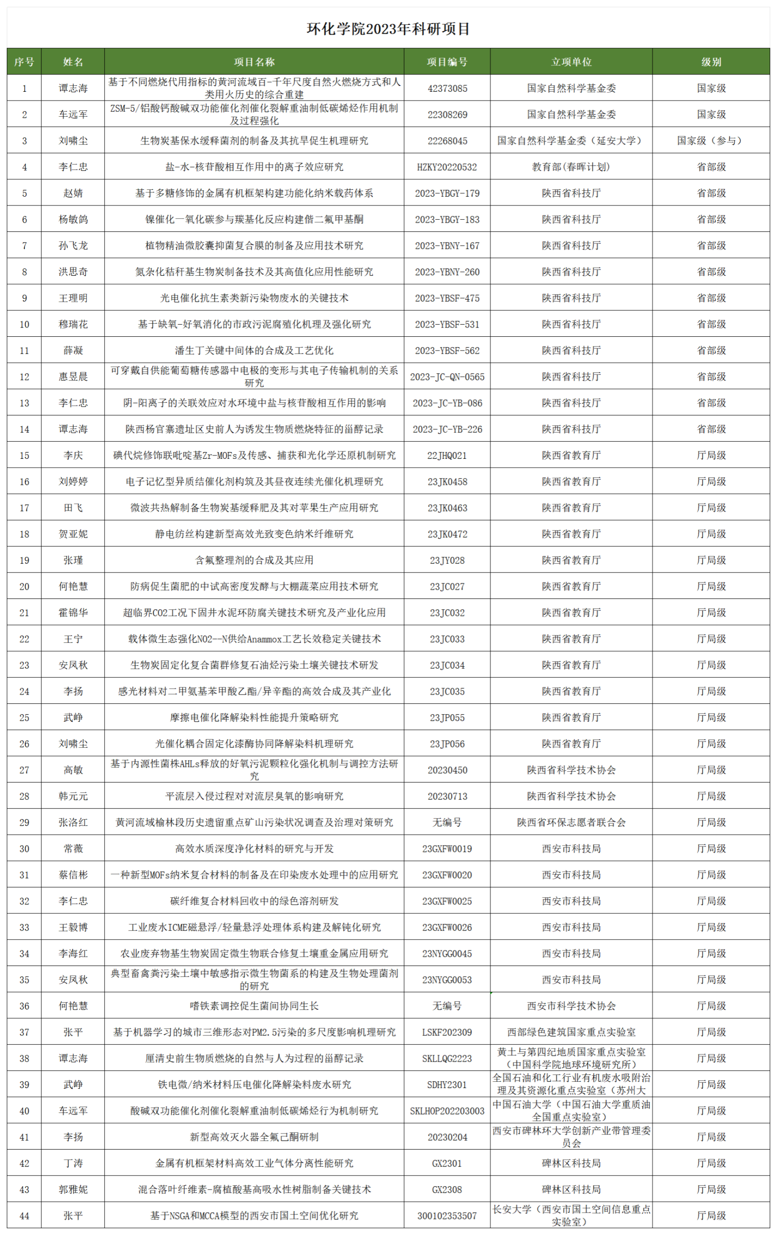 内涵式发展,全力推进“十四五”规划和“一院一策”行动计划的贯彻实施。2023年科研项目取得了可喜的成果,新增纵向科研项目44项,其中国家级项目3项,省部级项目11项,厅局级项目30项,纵向到款经费位于我校首位,具体项目清单如下。