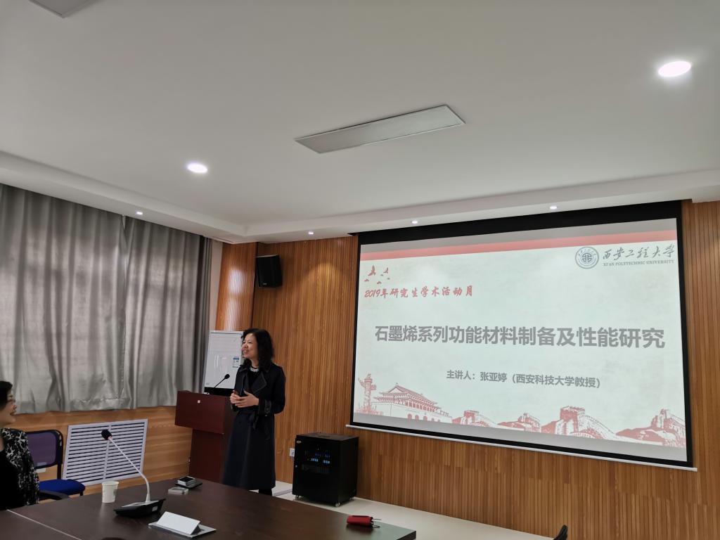 2019年11月7日下午,环化奈飞工厂 在507会议室举办了2019年研究生学术活动月活动,邀请西安科技大学教授张亚婷作了题为“石墨烯系列功能材料制备及性能研究”的学术报告。环化奈飞工厂 研一、研二学生参加了本次报告,报告会由奈飞工厂 副院长常薇主持。
