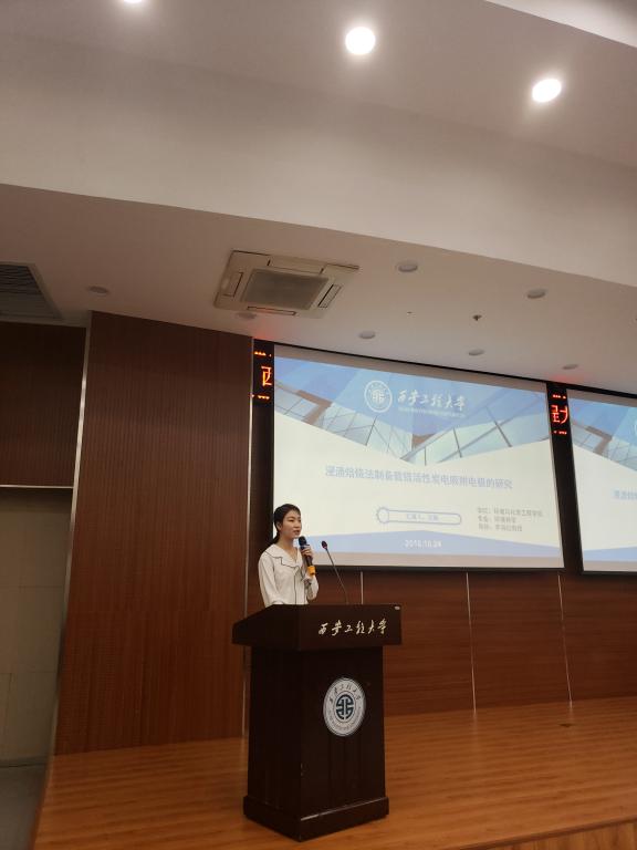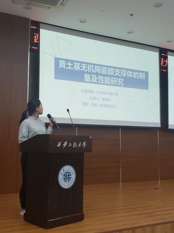 报告会上,由李海红教授指导的2016级环境科学专业研究生王娟就《浸渍焙烧法制备载锆活性炭电极材料的研究》、同帜教授级高工指导的2016级环境科学专业研究生杨博文就《黄土基无机陶瓷膜支撑体的制备及性能研究》、郑长征教授指导的2016级工业催化专业研究生丁羽佳就《煤基合成气合成C2+醇中Cu基催化剂的开发及应用》分别向与会师生做了汇报,同学们针对感兴趣的内容及疑问与三位报告人进行了现场互动交流,气氛热烈。