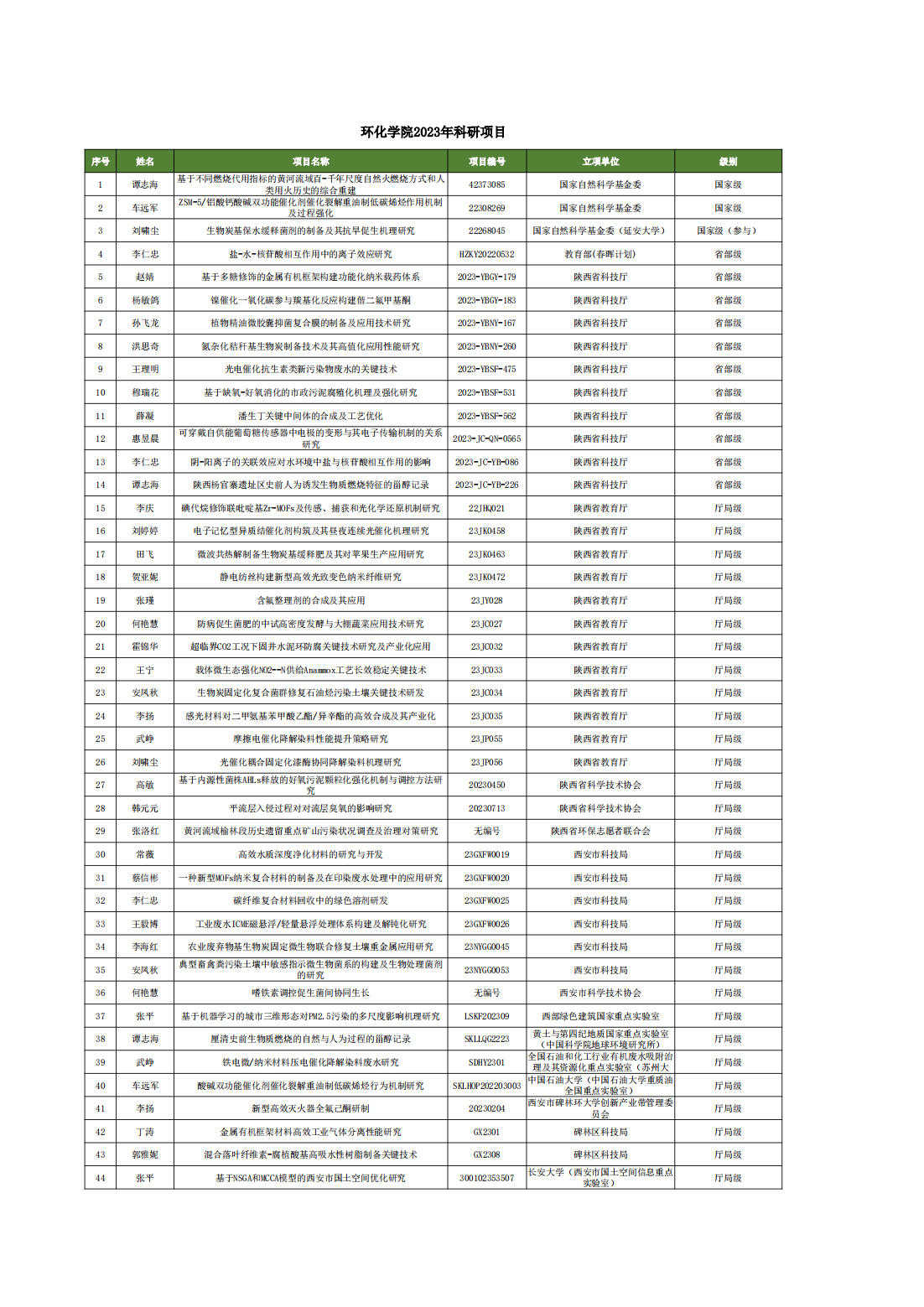 内涵式发展,全力推进“十四五”规划和“一院一策”行动计划的贯彻实施。2023年科研项目取得了可喜的成果,新增纵向科研项目44项,其中国家级项目3项,省部级项目11项,厅局级项目30项,纵向到款经费位于我校首位,具体项目清单如下。