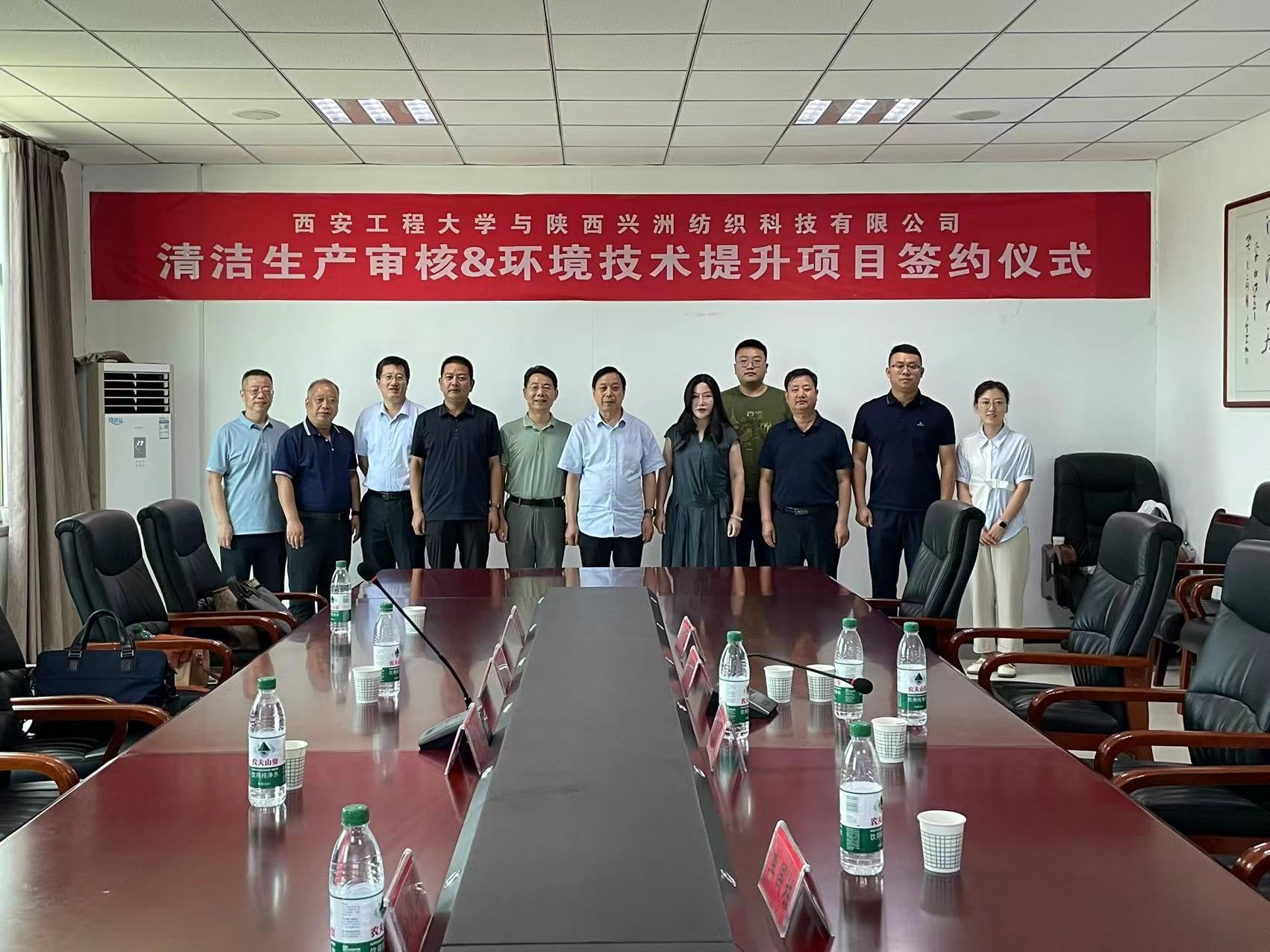 院长孙润军等一行前往陕西兴洲纺织科技有限公司参加“清洁生产审核&环境技术提升”项目签约仪式。常兴镇党委书记冯伟、镇长李小博,陕西省纺织行业协会会长严家民,陕西兴洲纺织科技有限公司周洋总经理、杨轩副总经理等出席,签约仪式由李小博镇长主持。