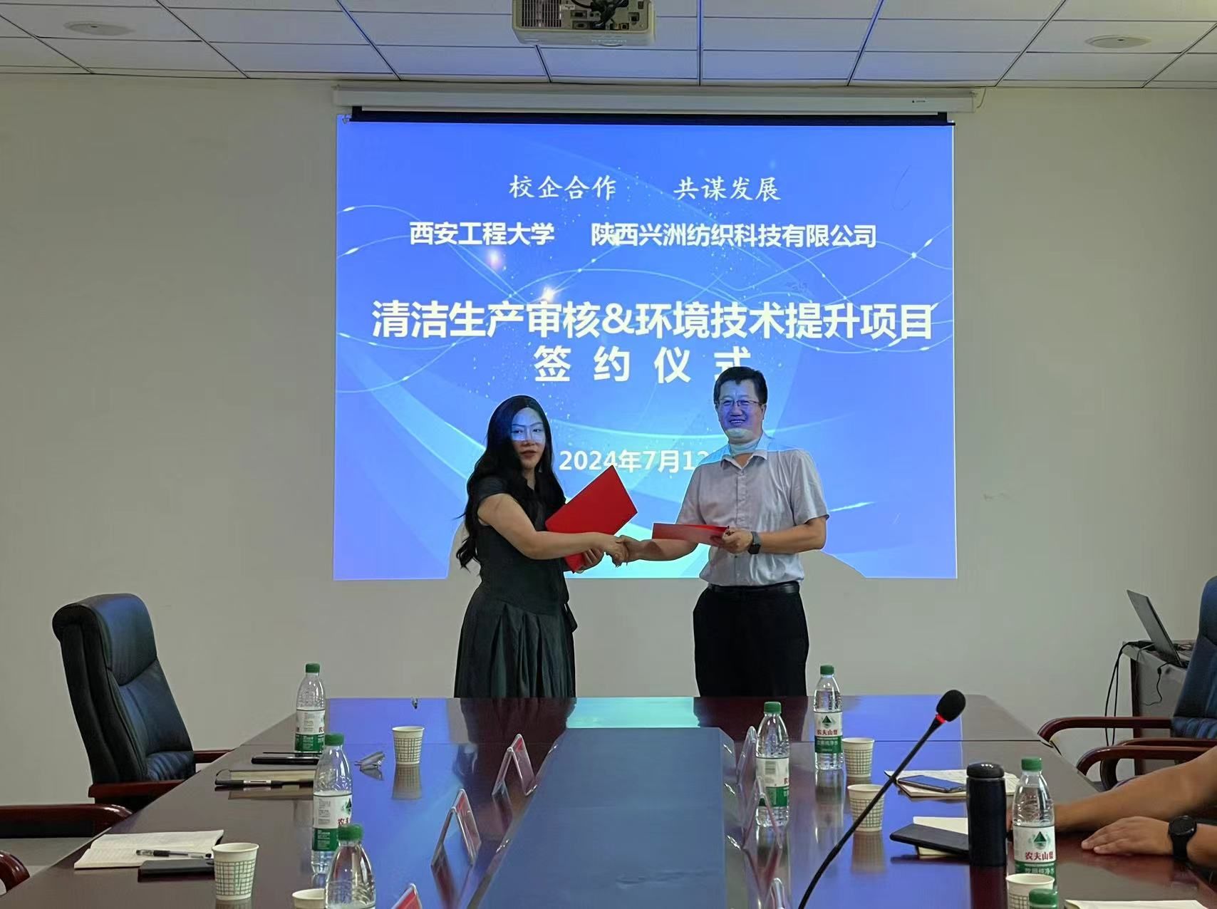 “十四五”发展规划实现预期目标,不断完善环境工程专业工程认证实践教学环节的一次重要实践。学校将以签约仪式为契机,进一步加深与陕西兴洲纺织科技有限公司的合作关系,积极从双方长远利益出发,以科技创新赋能学校事业高质量发展,为区域经济社会发展贡献科技创新智力服务。