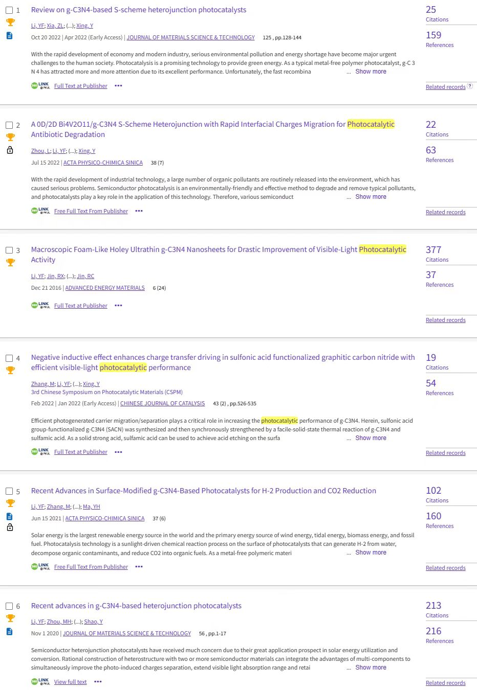 近日,科睿唯安(Clarivate Analytics)公布了Essential Science Indicators(简称ESI)数据库最新统计结果,奈飞工厂李云锋教授课题组6篇论文入选ESI高被引论文Top 1%,论文第一作者分别为奈飞工厂2019级硕士研究生周亮、张敏,2020级硕士研究生夏志玲等。这些成果主要围绕半导体光催化材料在环境与能源领域中的应用基础研究开展,针对传统光催化剂量子效率低、太阳能转化率差等关键科学问题课题组进行了系统的研究工作。