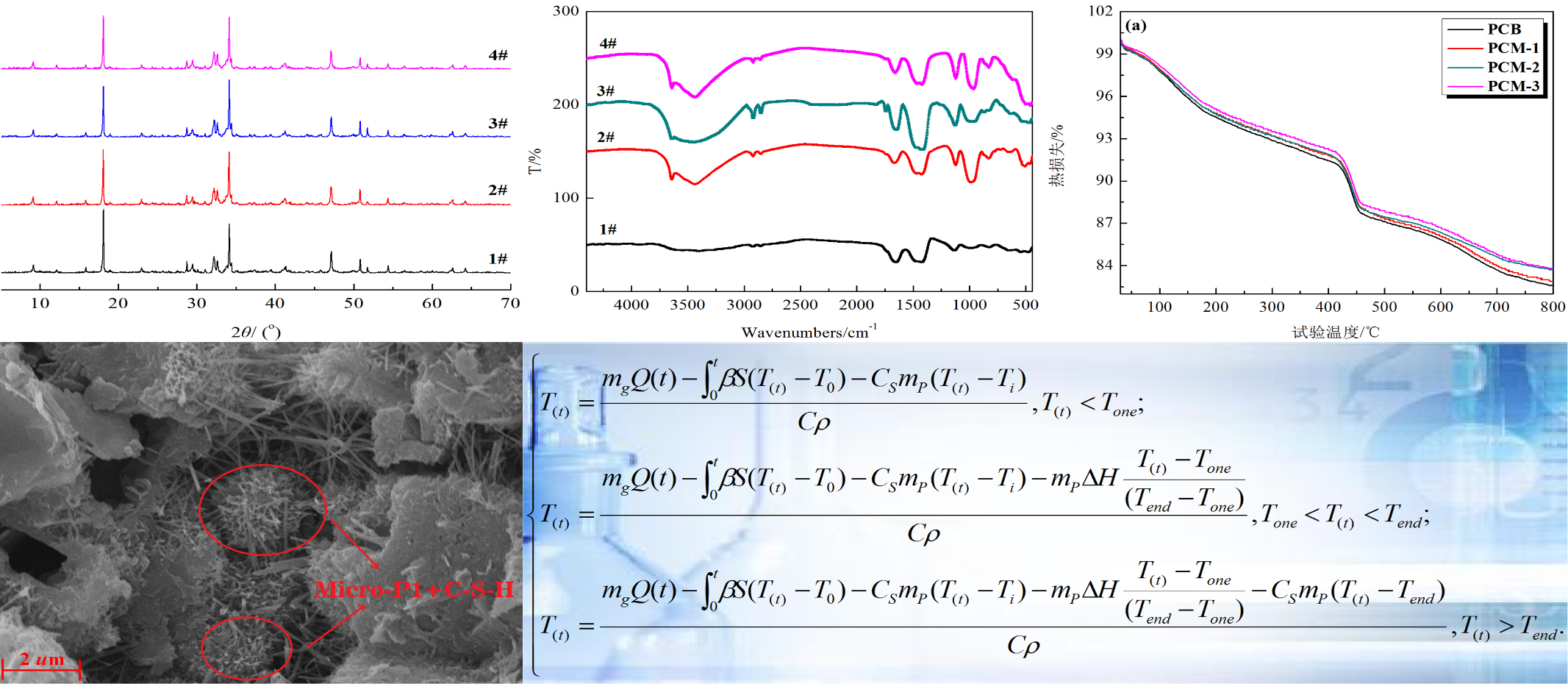 20世纪40年代后期,美国的相关学者进行了相变微胶囊技术的有关研究,经过半个世纪的发展,相变微胶囊技术取得了极大的进步。近期,相变微胶囊型控温材料已逐渐应用于硅酸盐水泥水化热控制技术领域,相变材料微胶囊化不仅有助于提升其热传导效率等应用性能,更有利于避免相变芯材与水泥基体间的直接接触,其相变吸热或放热效应更有助于实现硅酸盐水泥水化放热的可逆控制。本项研究以低熔点石蜡为芯材,脲醛树脂为壁材,通过原位聚合法成功制备了相变微胶囊型热控材料;辅以纳米二氧化硅(nano-SiO2)和氧化石墨烯(GO)进行了功能强化改性研究,并通过响应面设计法对其最佳合成工艺及关键技术参数进行了优化;利用相变微胶囊型控温材料成功实现了对水泥浆体系水化放热和水化温升的有效控制,主要体现为削峰效应、填谷效应与延缓效应;通过对相变微胶囊型控温材料应用性能及作用机理的研究,建立了半绝热和绝热两种状态下PCM系列水泥浆温升理论模型。