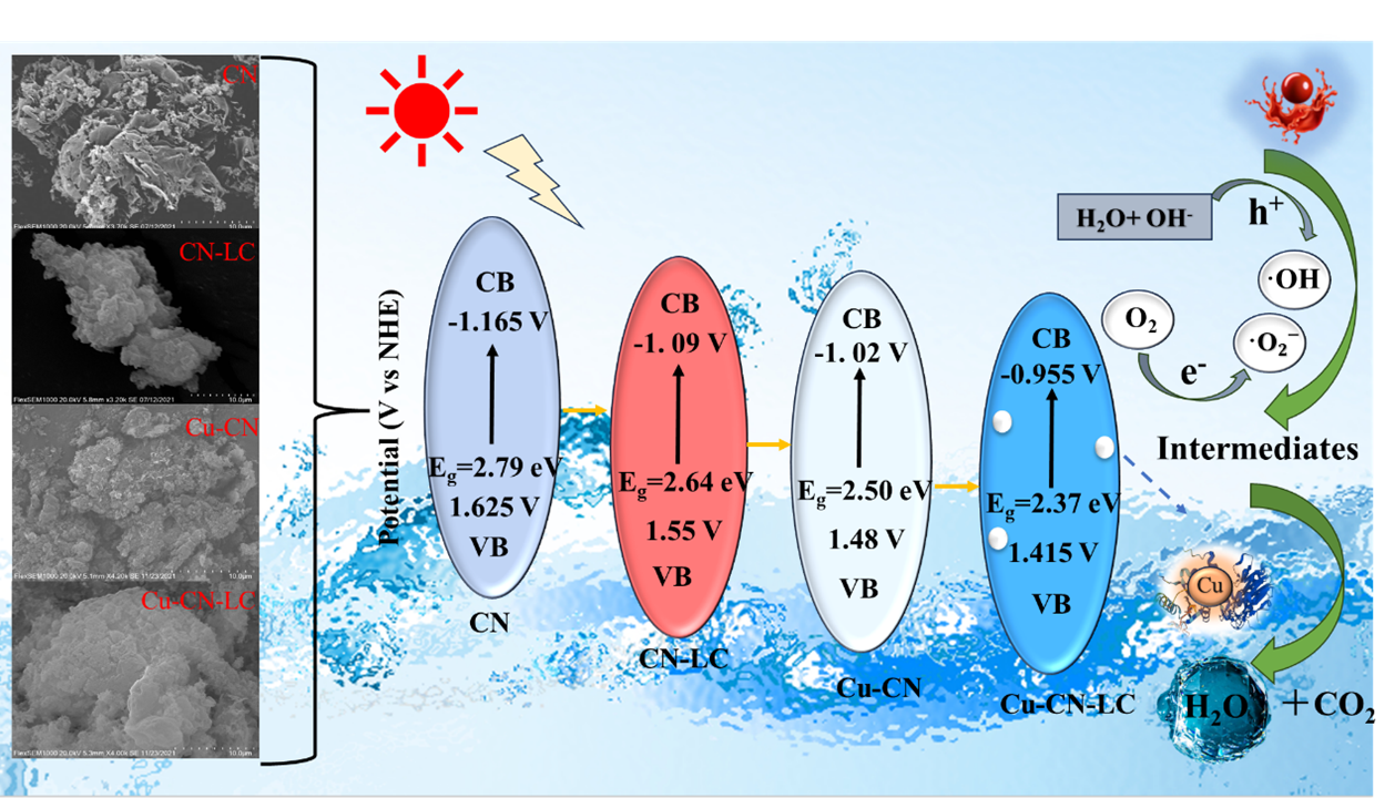 印染废水中含有高浓度的染料,这些染料已释放到环境中,严重威胁生态环境和人类健康。本文采用共价接枝法将漆酶固定在介孔g-C3N4(CN)上,并掺杂Cu以提高光催化与生物降解耦合(ICPB)系统的降解性能。固定化漆酶后CN的晶体结构没有变化。此外,固定化载体的更多含氧官能团增加,这提高了原始载体的光生电子-空穴对的分离效率。与游离酶相比,介孔g-C3N4固定化漆酶(CN-LC)和铜掺杂的介孔g-C3N4固定酶(Cu-CN-LC)都具有更宽的适应范围和更好的稳定性。由于Cu的加入,Cu-CN-LC的PL明显变弱,带隙减小。Cu-CN-LC对甲基橙和活性蓝的去除效率分别是CN的1.34倍和1.66倍,具有良好的重复使用性。本研究为降解染料废水提供了一种有效的策略。