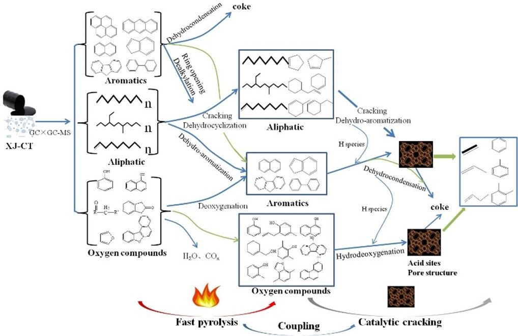 1)从分子层面解析煤焦油及其裂解产物组成,阐明煤焦油制高附加值化学品反应路径。