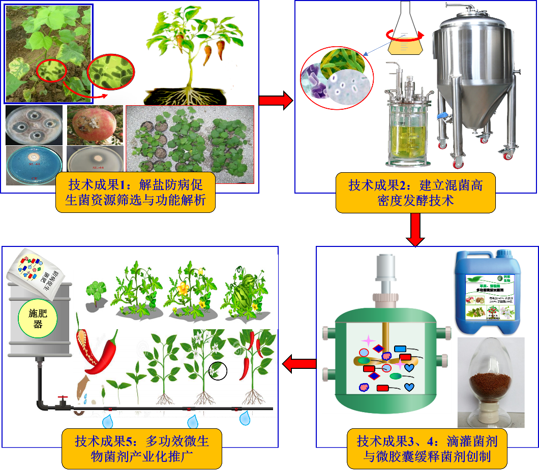 奈飞工厂武占省教授牵头,由奈飞工厂 、清华大学、石河子大学、咸阳润源生物科技有限公司、西安市农业技术推广中心等单位组成的团队武占省、何艳慧、李春、刘啸尘等人,历经近20年的产学研合作进行基础研究、技术攻关和应用推广,完成的“多功效微生物菌剂研发与推广应用”成果,荣获2023年中国产学研合作创新与促进奖“产学研合作创新成果奖”二等奖。该成果创新性从西北地区获得500余株具有自主知识产权的解盐防病促生功能菌株,完成了10余株优势代表菌株的解盐、防病促生机制解析和全基因组测序与基因功能结构解析;建立了3个协同增效混菌组合和混菌高密度发酵技术,获得有效活菌数为1000亿CFU/ml,活菌数超过农业生物菌剂国家标准的500倍;开发了系列多功效滴灌与缓释微生物菌剂产品和创制技术,获批国家微生物菌剂产品登记证3个,授权国家专利11件;产品和技术已转化到咸阳润源生物科技有限公司等多家单位,在苹果、猕猴桃、辣椒、番茄、黄瓜、西瓜等作物进行推广应用,具有显著经济、社会和生态效益。