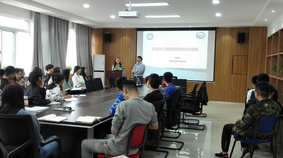 在报告会上,周春红研究员介绍了80多年来沙尘预报模式、化学天气预报模式的发展趋势、所涉及大气物理、物理化学过程及机理、天气模式与沙尘预报模式的嵌套、优化及模式检验及空、天、地观测系统等沙尘预报的方法的进步及基础机理的发展趋势。报告深入浅出,提高了师生对中国北方及亚洲地区沙尘发生的机理、过程的认识,拓展了师生的学生视野。
