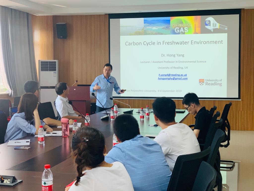 报告会上,杨洪博士做了题为“Carbon Cycle in Inland Waters”的学术报告,主要以瑞典、挪威、中国武汉等地湖泊、水库观测结果为例介绍了内陆水体二氧化碳、甲烷、氮氧化物等温室气体的收支动态,从宏观尺度阐述了全球温室气体收支中内陆水体的贡献,强调内陆水体温室气体收支的时空变化、影响因素及尺度问题,评价了现有工程地质方法用以封存、削减温室气体的效率。在随后的提问环节中,本奈飞工厂