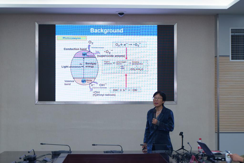 的专业方向和研究特色;惠昱晨老师在“先进电池及储能材料”分论坛作题为《超声表面修饰对超级电容器性能的影响》学术交流;侯康老师课题组硕士生袁兵、武峥老师课题组硕士生史晓昱、吴思齐、范保喜分别作《汉中市陆地生态系统碳储量评估与预测》、《室温冷热循环下类石墨烯相-氮化碳纳米片热释催化降解染料废水》、《冷热变换下钛酸铋钠热释催化降解有机污染物》、《锡酸锌/石墨压催化降解染料废水》等墙报展示学术交流,展示研究生在学期间科研成果。