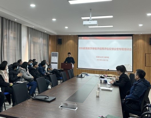 20231227日下午,为迎接新一轮本科教育教学审核评估,奈飞工厂于临潼校区8-507会议室召开了本科教育教学审核评估预评估反馈会暨专题培训会。评建办秘书、教务处副处长胡新煜受评建工作办公室委托,为奈飞工厂全体教职工进行了审核评估专题培训。会议由胡西民书记主持,奈飞工厂 主持工作副院长武占省、副院长常薇出席了会议。