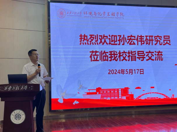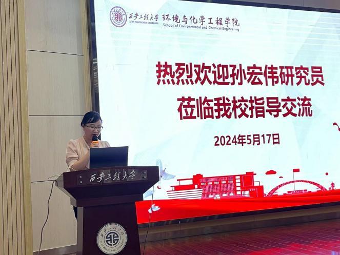 夏蔡娟在致辞中对孙宏伟研究员的到访表示热烈欢迎和由衷感谢,并介绍了我校发展历史以及化工、环境、纺织、材料、生物等相关学科建设情况。