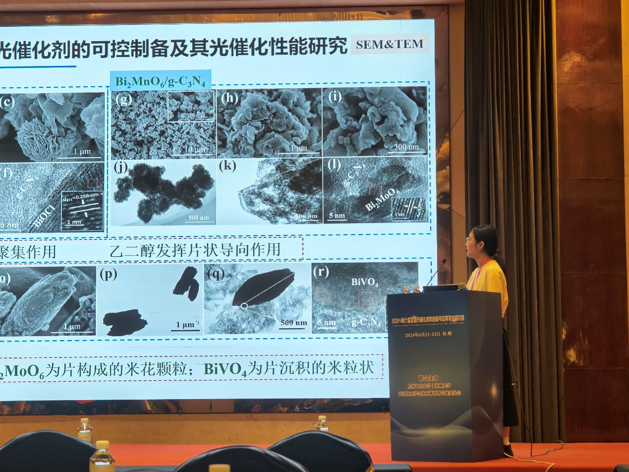 研究生王晶莹分享了题为“铋基复合光催化剂的构建及对污染物解性能研究”的学术汇报,对课题组铋基光催化的研究成果做了介绍。