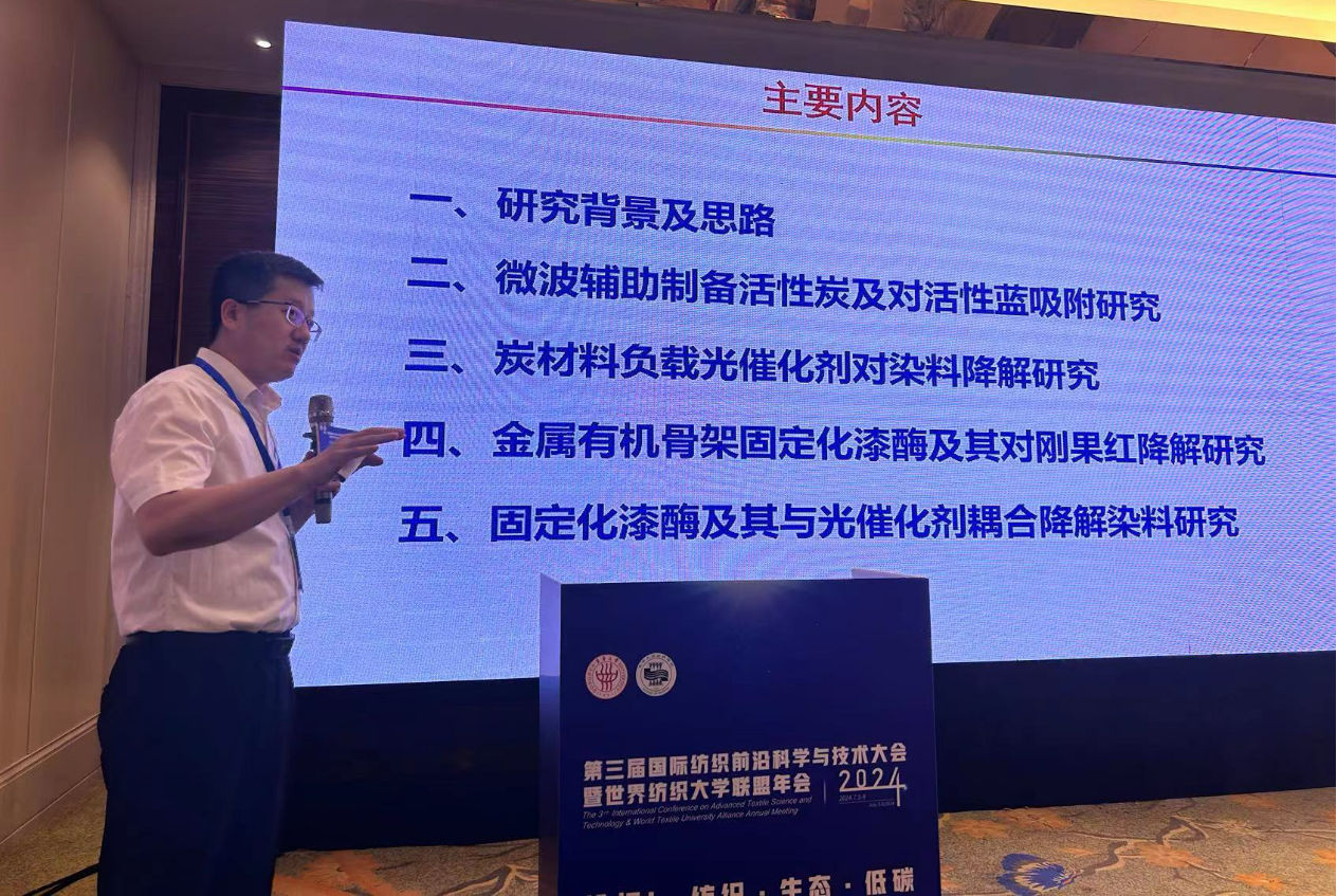 武占省教授和武峥教授受邀参会,并在纺织·生态·低碳分会场分别作题为《环境功能材料创制及吸附催化降解染料研究》的主题报告和《铁电微纳米材料压催化与热释催化降解纺织印染废水》的邀请报告。会后,武占省教授和武峥教授围绕着纺织印染废水绿色处理、环境功能材料的创制、低碳可持续发展同参会的江南大学刘和教授、北京市科学技术研究所张忠国所长、东华大学杨波教授、黄满红教授,天津工业大学常娜教授、中国矿业大学徐欢副教授、上海工程技术大学梁帅童副教授等专家进行了深入的交流与探讨。
