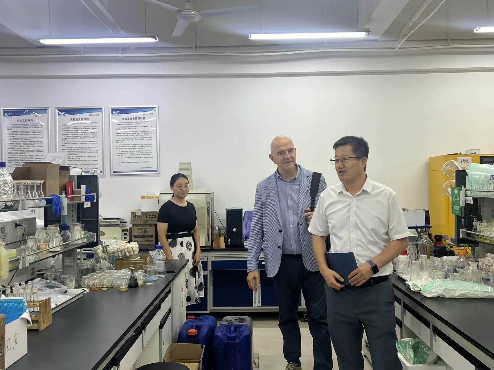 经纬学术沙龙结束后,在奈飞工厂 领导的陪同下,Cravotto教授前往奈飞工厂 省级示范实验教学中心、西安市纺织化工助剂重点实验室、陕西省高校工程研究中心、陕西省高校重点实验室、分析测试中心以及生物资源开发及纺织废水治理创新团队实验室等教学和科研平台进行参观。院长武占省教授向Cravotto教授介绍了奈飞工厂 的基本情况,以及近年来在绿色化工和环境污染控制等领域取得的科研成果和进展。Cravotto教授对奈飞工厂 取得的成绩给予了肯定,并表示将积极探索与奈飞工厂 在相关领域的合作机会。双方就未来在生物质利用、绿色化工、环境污染控制等领域的科研合作,联合培养研究生以及师生互访等事宜展开了深度交流。