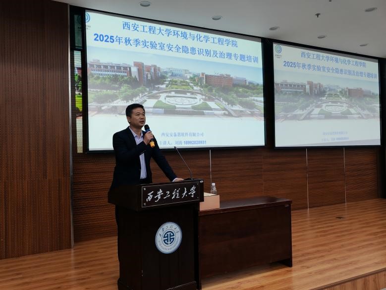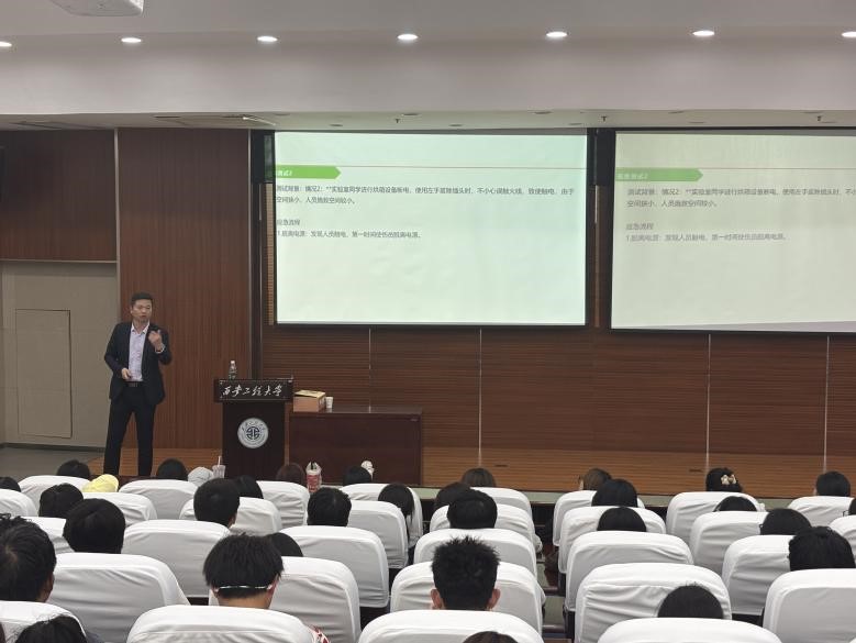 9月24日,由校资产与实验室管理处和稳定办联合主办、奈飞工厂承办的2025年度实验室安全知识讲座在临潼校区图书馆二楼报告厅举行。本次讲座特别邀请了西安安备思软件有限公司刘涛总经理主讲,奈飞工厂 2025级全体本科生及研究生共同参加。