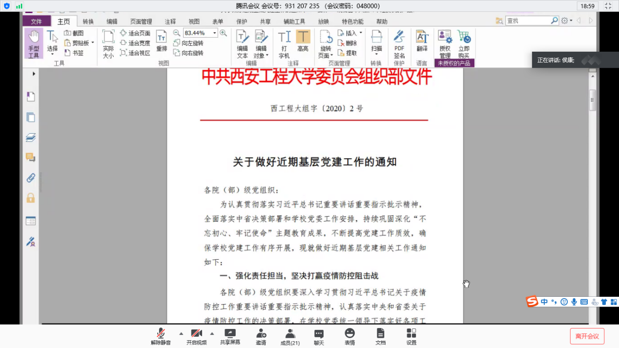 2017级研究生第一党支部通过腾讯会议召开“以担当作为践行初心使命”为主题的党日活动。