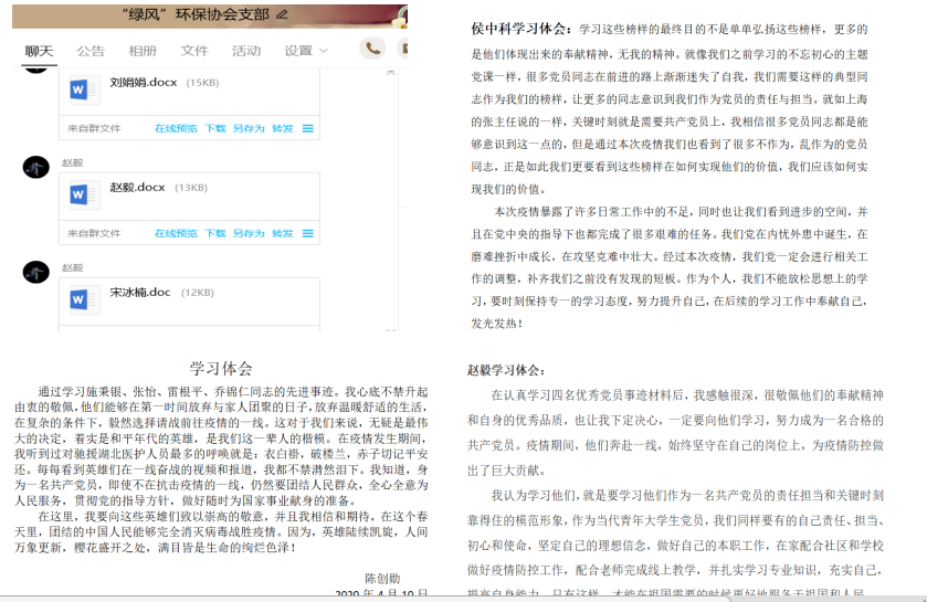 在学习优秀党员的先进事迹后,大家纷纷表示,这些具体且生动的事迹,就是党员恪尽职守、勇于担当、开拓进取精神的最好诠释,作为学生党员现阶段将积极响应国家号召,向抗疫榜样学习,起先锋模范作用,做好在线学习,为抗击疫情贡献一份自己的力量。