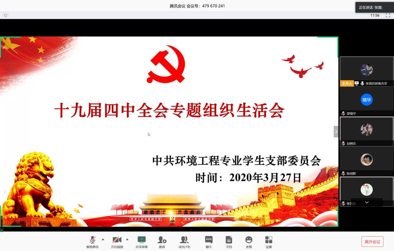 2020年3月27日下午16时,环境工程专业学生党支部以视频会议形式召开了十九届四中全会专题组织生活会,党支部20名党员参加了学习讨论。