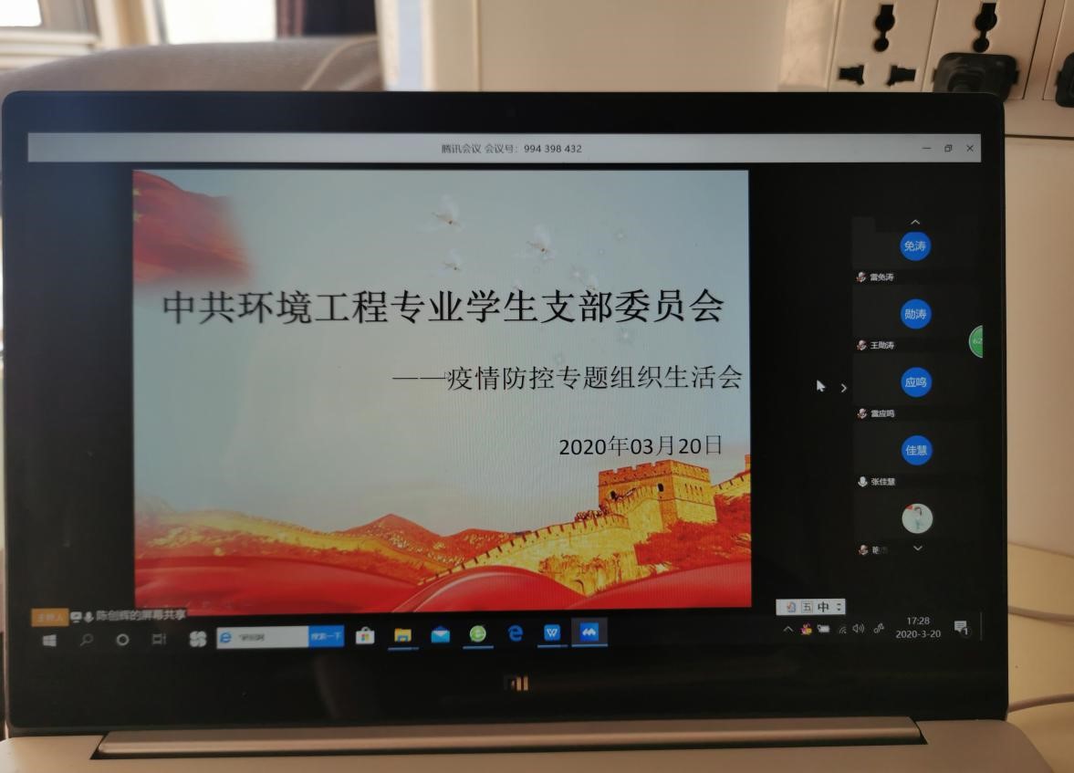 为贯彻落实校党委组织部《关于做好近期基层党建工作的通知》要求,2020年3月20日下午16时,环境工程专业学生党支部召开了有关疫情防控工作线上专题组织生活会。生活会主要包括全球新冠肺炎疫情态势、近期学习情况反馈、抗疫志愿活动分享等三部分。党支部22名党员参加了会议,党支部书记邵瑞华老师主持了会议。