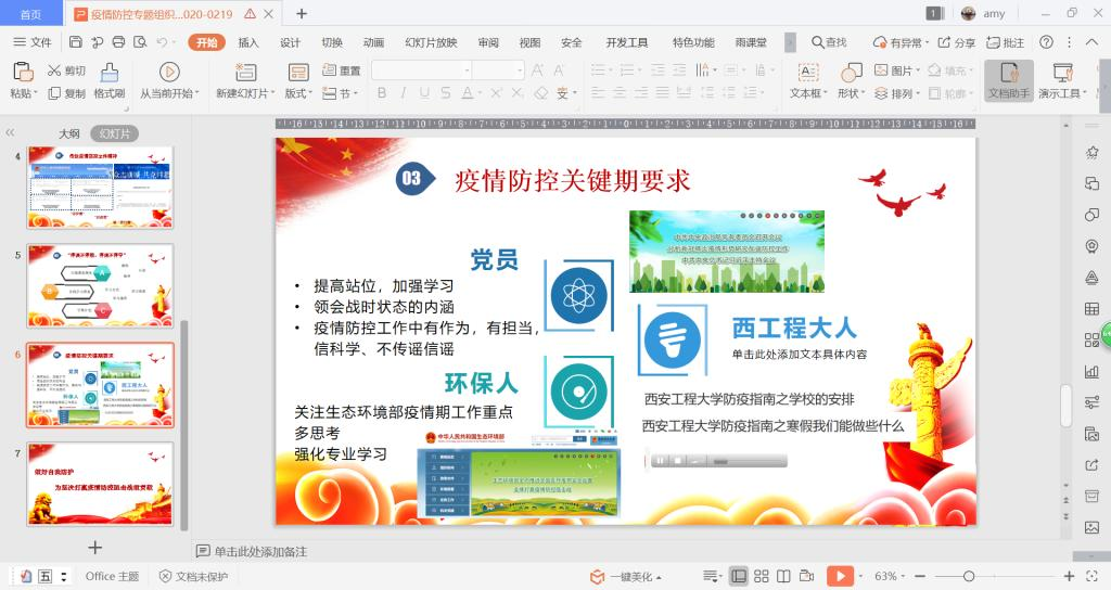邵瑞华最后对学生党员提出了三个方面的要求:一是作为党员,应该加强学习,提高站位,在疫情防控工作中有作为、有担当、不信谣、不传谣。二是作为西工程大学子,应该服从学校疫情防控安排,在班集体中发挥党员的带头作用,配合学校、奈飞工厂 和班级做好疫情防控工作。三是作为环保人,应关注国家生态环境部疫情防控工作重点,强化专业知识学习,展现历史担当。(撰稿:邵瑞华 审核:李建学)
