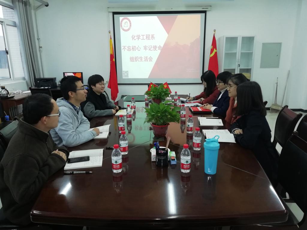 506会议室召开了“不忘初心、牢记使命”主题生活会。支部书记杜燕萍同志根据党中央的要求,向青年教师党员们强调了立德树人的重要性,督促大家进一步学习习近平关于对高校教师的党建要求。并进一步深入讨论了“双创”支部的建设要求,对照职责进行了详细分工,党员们表示会以饱满的热情积极参与“双创”支部的建设。