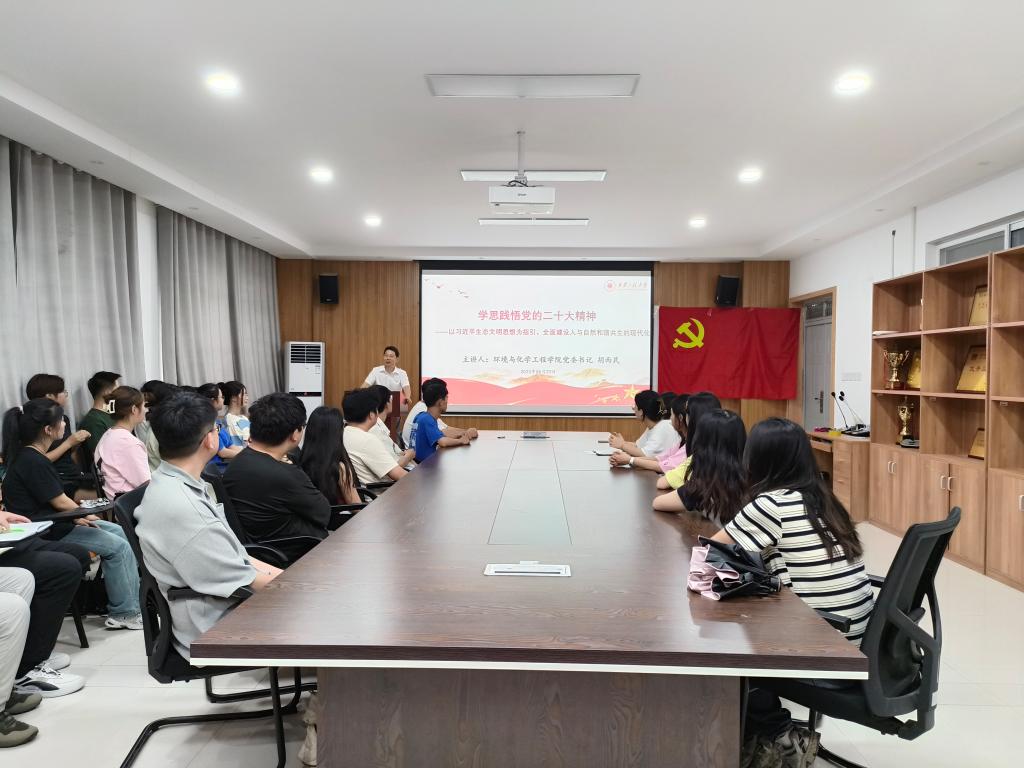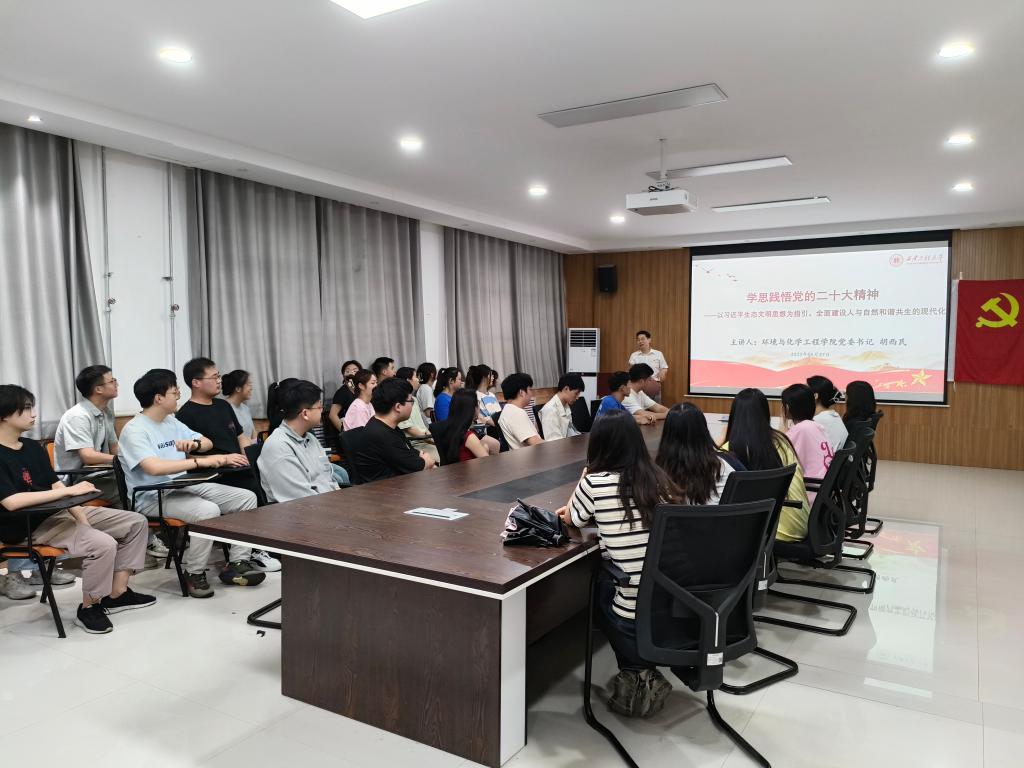 宣誓结束后,党委书记胡西民以《学思践悟党的二十大精神——以习近平生态文明思想为指引,全面建设人与自然和谐共生的现代化》为题,围绕生态文明建设的重要地位、习近平生态文明思想的科学体系、党的十八大以来生态文明建设的巨大成就、生态文明建设新的历史任务和战略部署四个方面,为新发展党员上了一节生动的党课。