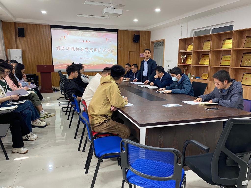 绿风环保协会党支部扩大会议在8号楼507会议室举行,出席会议的有环化奈飞工厂