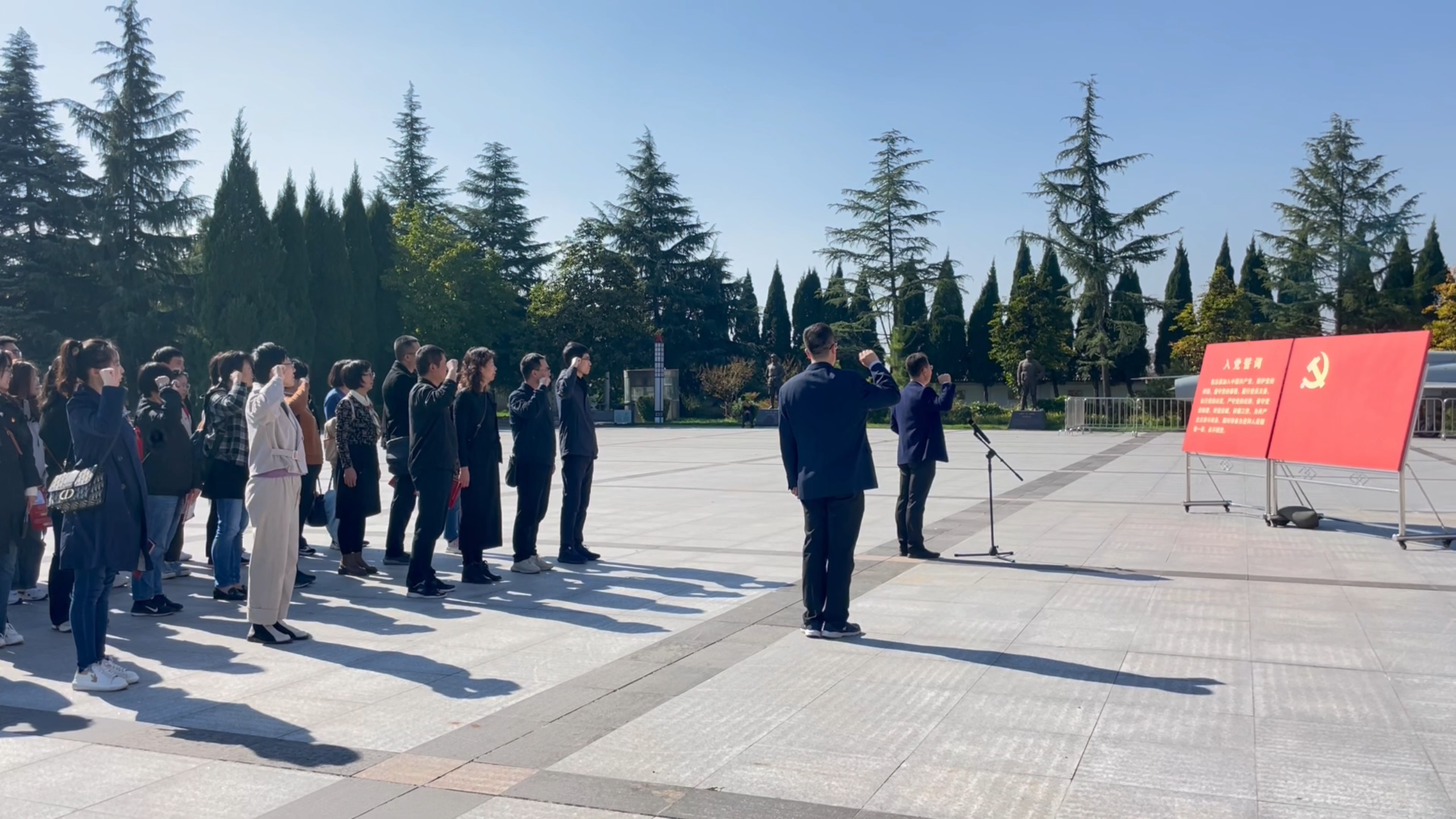党委书记胡西民领誓,大家重温入党誓词,用铮铮誓言表达了继承革命先烈遗志,坚定共产主义信念,忠于党的坚强决心。在扶眉战役纪念馆,通过“审时度势,运筹帷幄”、“诱敌深入,决战扶眉”、“军民齐心,踊跃支前”、“缅怀先烈,不忘初心”四个展区的参观学习,师生党员们更加深入地了解了扶眉战役的背景、过程和意义,深切感受革命先辈为人民事业抛头颅洒热血的坚定信仰。