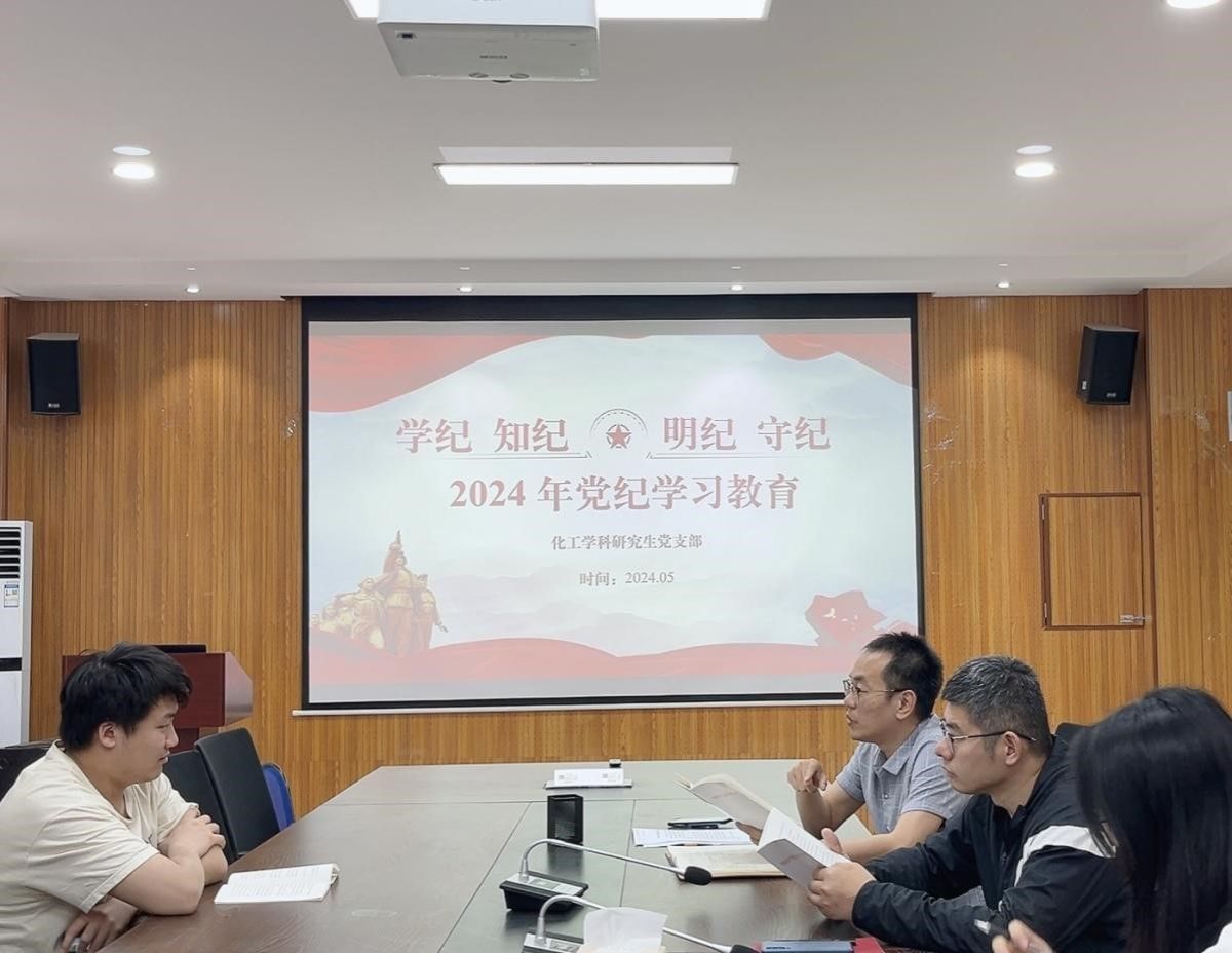 为深入学习贯彻新修订后的《中国共产党纪律处分条例》,进一步提高党员纪律意识。2024年5月10日,化工学科研究生党支部于环化楼507会议室举行以“学纪、知纪、明纪、守纪”为主题的党日活动。奈飞工厂