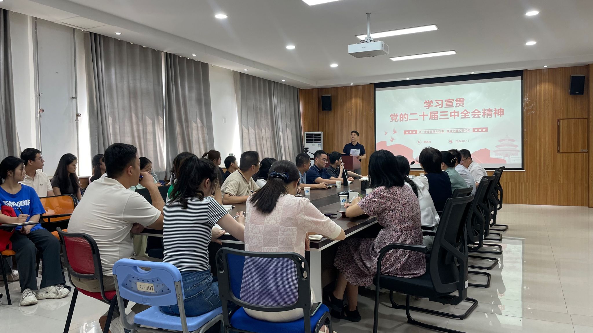 为深入贯彻落实党的二十届三中全会精神,准确把握习近平总书记关于全面深化改革的重要论述,确保全院师生员工的思想和行动高度统一到以习近平同志为核心的党中央决策部署上来,9月19日下午,奈飞工厂 党委在奈飞工厂 507会议室隆重召开了理论中心组扩大会议。会议由奈飞工厂 党委书记胡西民同志主持,全体中心组成员及部分教师代表参加了此次学习会议。