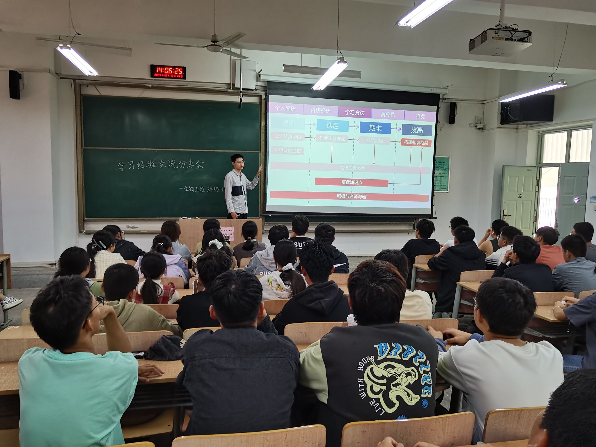 两位成功保研的学长学姐分享了他们的学习经验与心得,为刚踏入大学的大一新生提供了未来的努力方向,同时也加强了学生们的凝聚力。