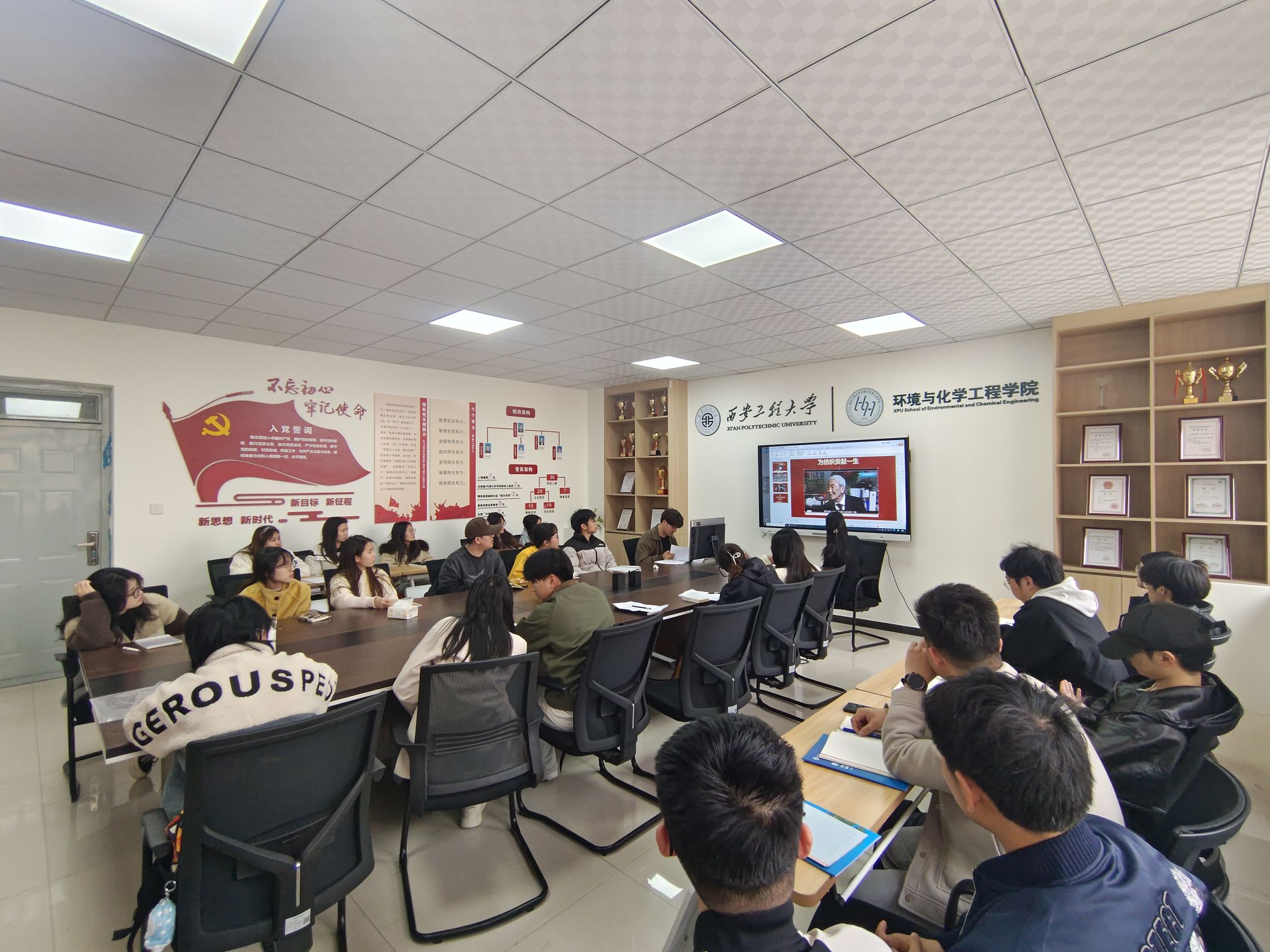 奈飞工厂环境工程专业学生党支部于3月6日举办“学习姚穆院士先进事迹,争做时代先锋者”主题党日活动,深切缅怀我国著名纺织材料专家、教育家、中国工程院院士姚穆同志,深入学习姚穆院士感人事迹。活动由支部书记任子瑜主持,支部全体党员参加。