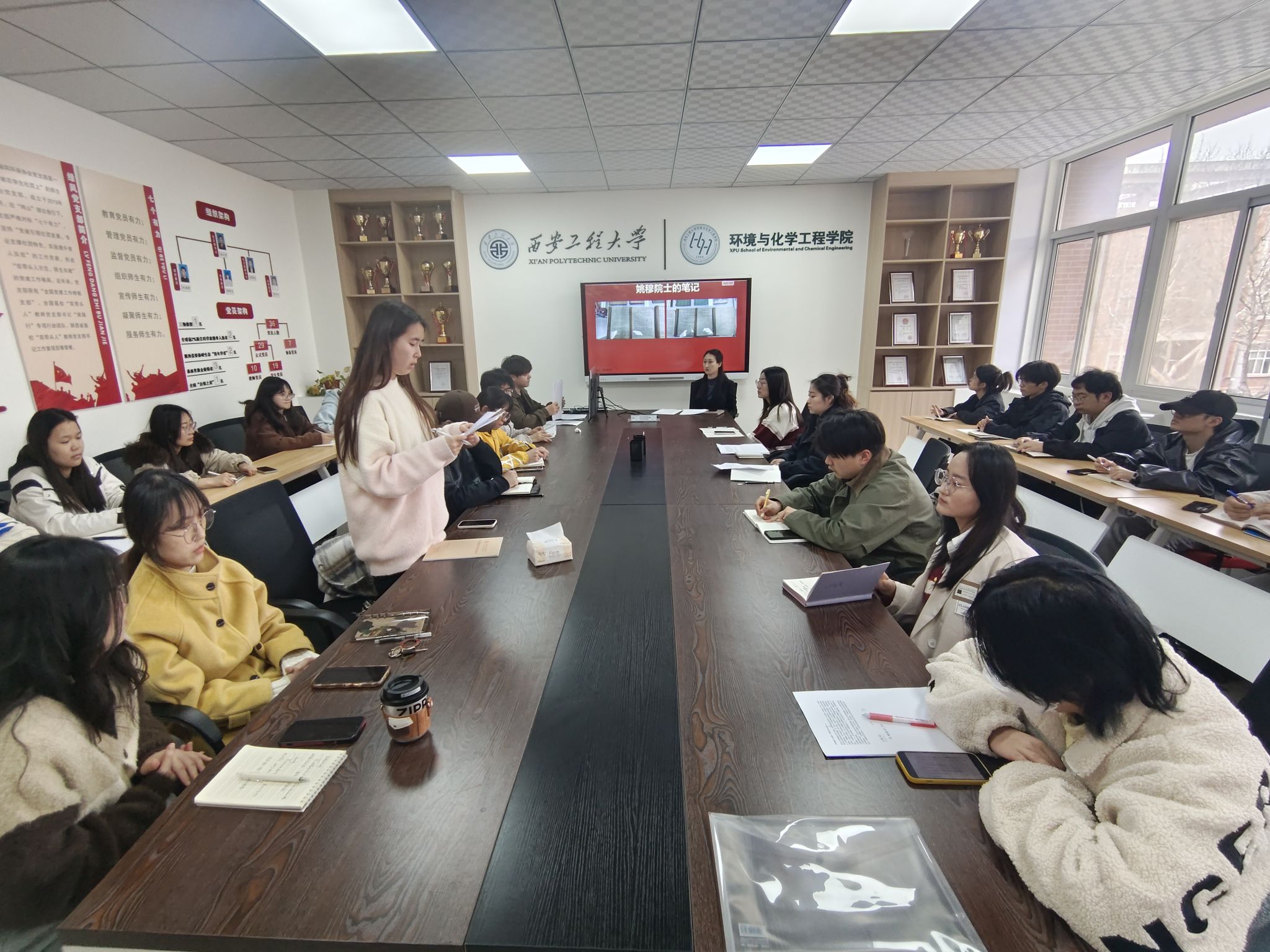 支部委员从科研报国、教书育人、科技创新、奉献担当四个维度开展系统领学。党员代表康嘉佳表示要以姚穆前辈为榜样,用更积极向上的精神面貌投入到未来学习与科研中去,追求卓越、笃行不怠。
