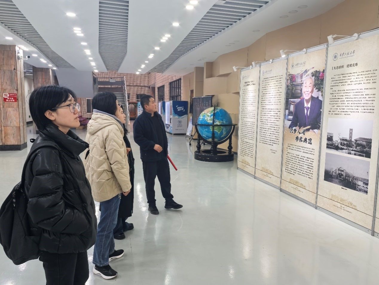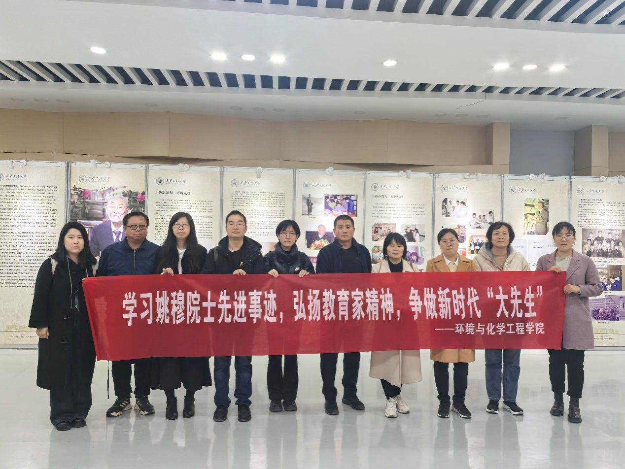 委员会关于开展向姚穆同志学习的决定》,弘扬科学家精神,2025年3月12日,环工党支部的党员教师们在学校金花图书馆参观学习了姚穆院士生平事迹展。