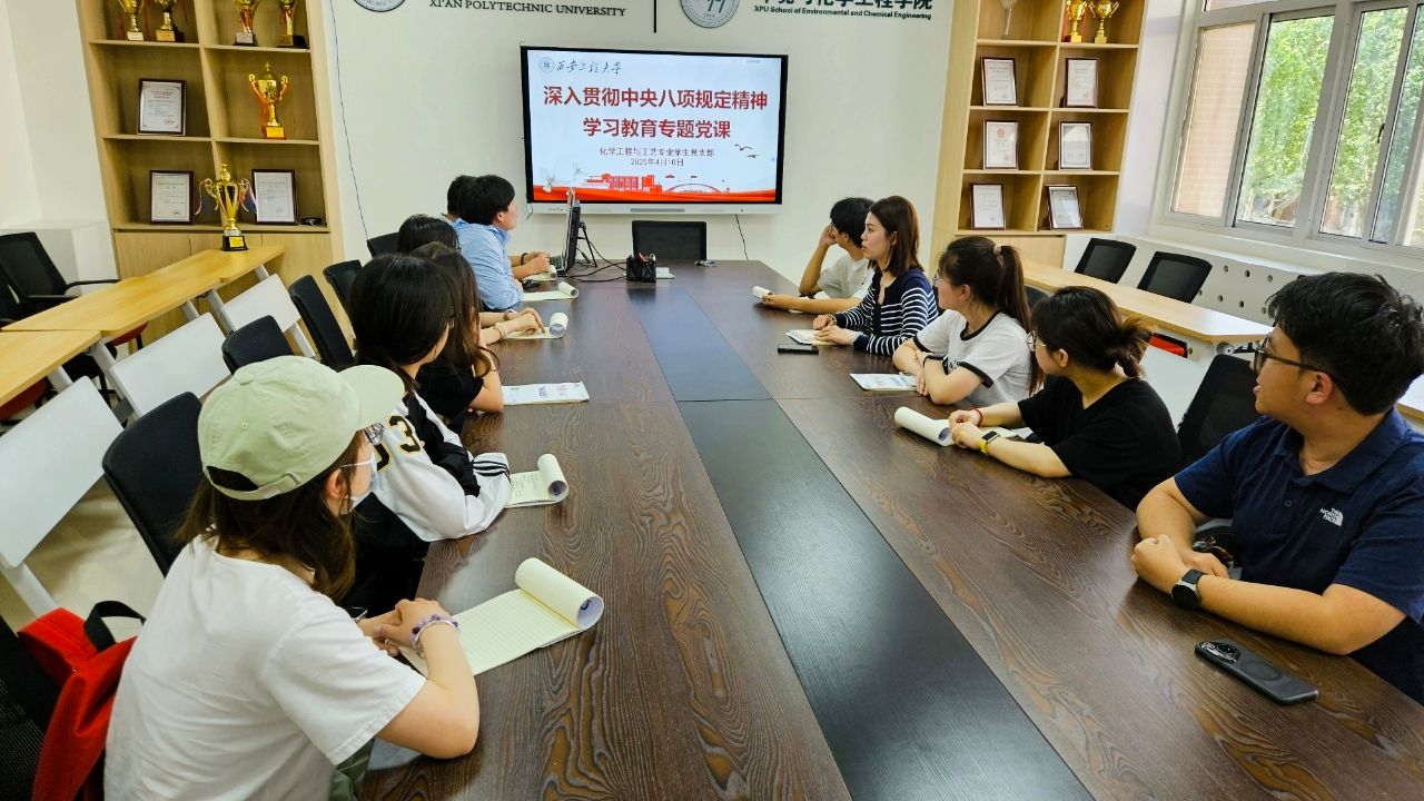 4月10日,奈飞工厂化学工程与工艺专业学生党支部在环化楼236会议室召开“严守中央八项规定精神,争做新时代合格党员”专题党课,支部书记盖潇宇主讲,支部全体党员参与。