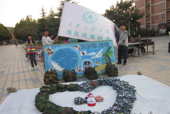 10月16日,我校“绿风”环保协会在临潼校区中心广场举办了军装捐赠活动。活动呼吁刚刚结束军训不久的新生,将自己不再使用的军训服装捐赠给贫困地区的孩子和一些急需帮助的人们,呼吁在校学生以力所能及的方式为贫困山区奉献爱心,通过实际行动帮助更多的人。
